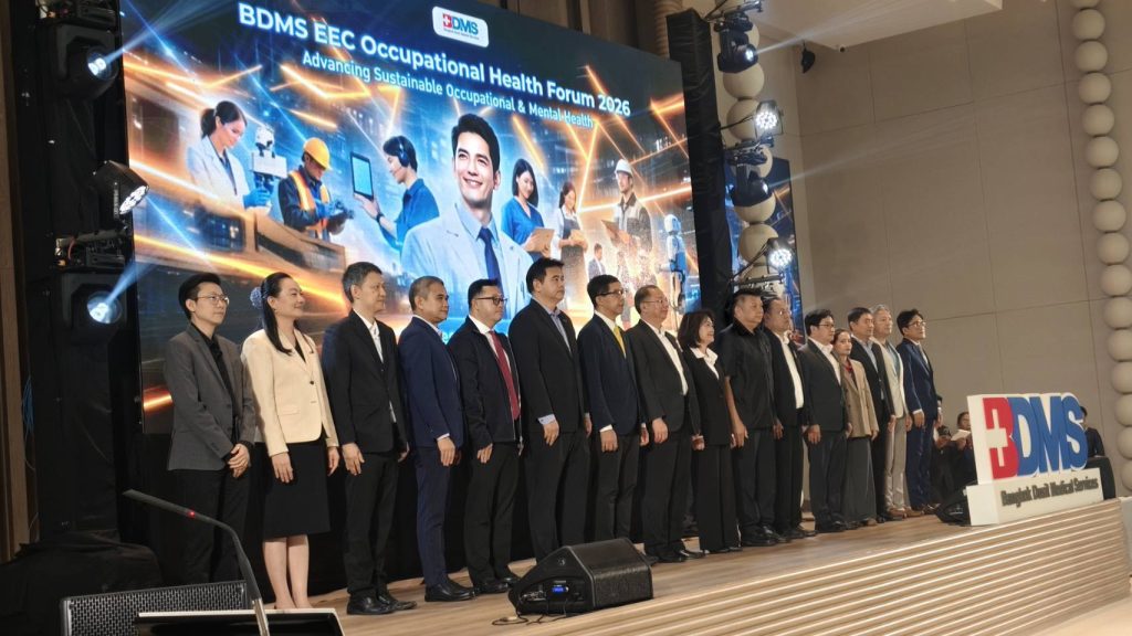 เครือบริษัท กรุงเทพดุสิตเวชการ จำกัด (มหาชน) หรือ BDMS จัดงานสัมมนา “BDMS EEC Occupational Health Forum 2026” เพื่อส่งเสริมความร่วมมือด้านอาชีวอนามัยในพื้นที่เขตพัฒนาพิเศษภาคตะวันออก หรือ EEC พร้อมยกระดับการดูแลสุขภาพแรงงานให้ครอบคลุมทั้งมิติของการป้องกัน การส่งเสริมสุขภาพ การรักษา และการส่งต่ออย่างเป็นระบบ รองรับการเติบโตของภาคอุตสาหกรรมและความเปลี่ยนแปลงของโลกการทำงานในยุคปัจจุบัน