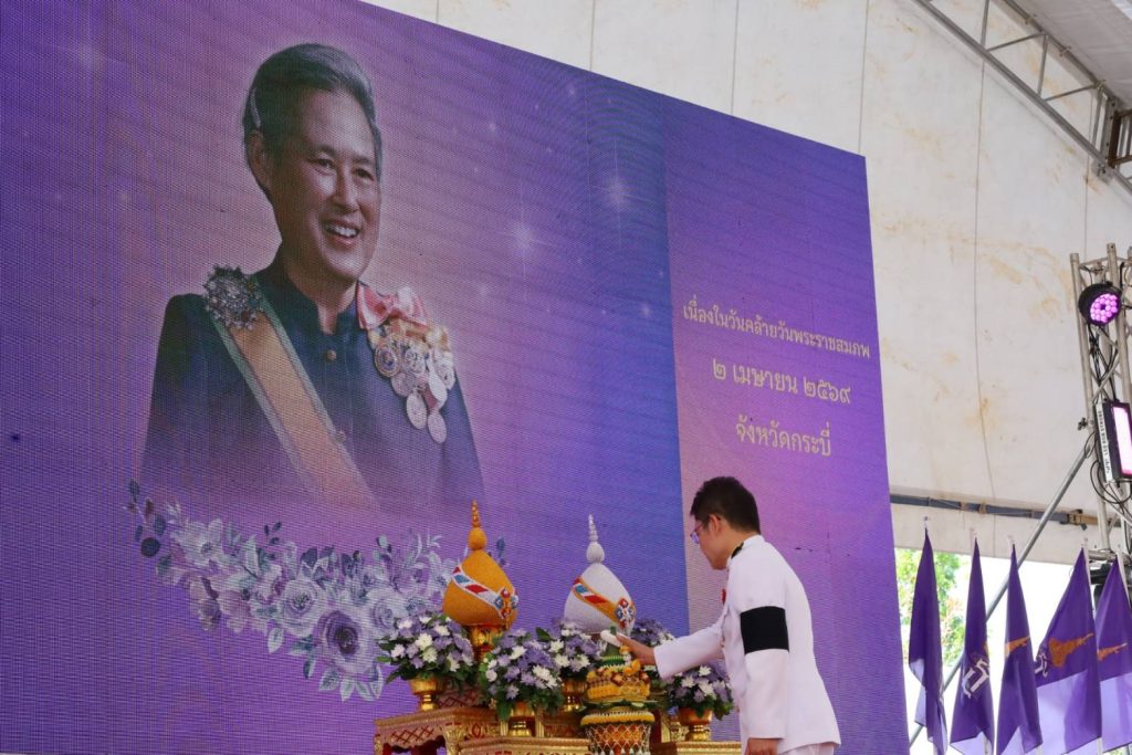เมื่อวันที่ 2 เมษายน 2569 เวลา 11.00 นาฬิกา ที่สนามหน้าศาลากลางจังหวัดกระบี่หลังใหม่ ถนนอุตรกิจ เขตเทศบาลเมืองกระบี่ ตำบลปากน้ำ อำเภอเมืองกระบี่ จังหวัดกระบี่ นายอังกูร ศีลาเทวากูล ผู้ว่าราชการจังหวัดกระบี่ พร้อมด้วยหัวหน้าส่วนราชการ ข้าราชการตุลาการ ข้าราชการพลเรือน ตำรวจ ทหารบก นาวิกโยธิน เหล่ากาชาดจังหวัดกระบี่ แม่บ้านมหาดไทยตัวแทนพนักงานรัฐวิสาหกิจ และตัวแทนกลุ่มพลังมวลชน จาก 78 หน่วยงาน พร้อมใจกันเป็นหนึ่งเดียวสวมเสื้อชุดไทยที่เป็นเอกลักษณ์ของชาติไทย และชุดไทยประจำจังหวัดกระบี่ ชุดผ้าไทย ผ้าพื้นเมือง ร่วมลงนามถวายพระพร ถวายเครื่องราชสักการะพานพุ่มดอกไม้สด ถวายราชสดุดีเทิดพระเกียรติน้อมรำลึกถึงพระมหากรุณาธิคุณ เบื้องหน้าพระฉายาลักษณ์ กรมสมเด็จพระเทพรัตน์ราชสุด เจ้าฟ้ามหาจักรีสิรินธร มหาวชิรลงกรณวราชภักดี สิริกิจการิณีพีรยพัฒน รัฐมีมาคุณากรปิยชาติ สยามบรมราชกุมารี สมเด็จพระกนิษฐาธิราชเจ้า กรมสมเด็จพระเทพรัตน์ราชสุดาฯ สยามบรมราชกุมารี เนื่องในโอกาสวันคล้ายวันพระราชสมภพ ฉลองพระชนมายุครบ 71 พรรษา วันที่ 2 เมษายน 2569 และเนื่องในวันอนุรักษ์มรดกไทย ประจำปี 2569
