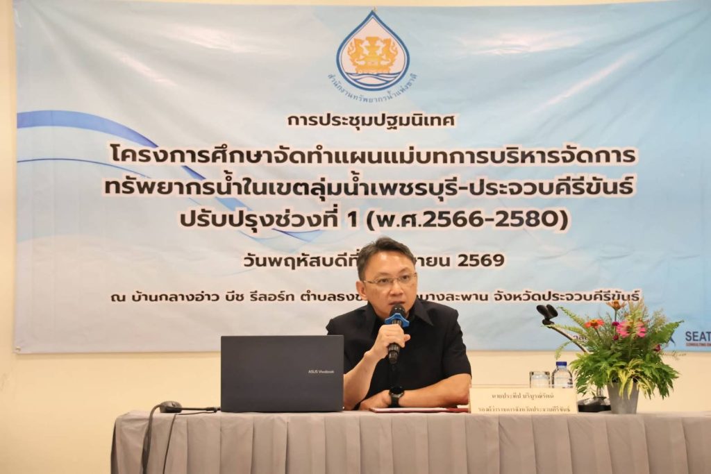 เมื่อวันที่ 2 เมษายน 2569 สำนักงานทรัพยากรน้ำแห่งชาติ (สทนช.) จัดประชุมปฐมนิเทศโครงการศึกษาจัดทำแผนแม่บทการบริหารจัดการทรัพยากรน้ำ ลุ่มน้ำเพชรบุรี–ประจวบคีรีขันธ์ (ปรับปรุงช่วงปี 2566–2580) ณ อำเภอบางสะพาน จังหวัดประจวบคีรีขันธ์ โดยมีหน่วยงานรัฐ องค์กรท้องถิ่น และผู้ใช้น้ำในพื้นที่ จ.ประจวบฯ และ จ.ชุมพร เข้าร่วม