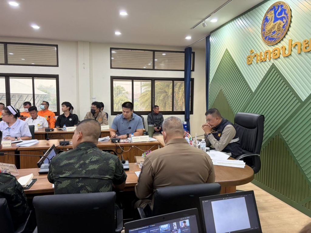 เมื่อวันที่ 2 เมษายน 2569 เวลา 09.00น. ที่ห้องประชุมอำเภอปาย นายอุดมศักดิ์ ขาวหนูนา รองผู้ว่าราชการจังหวัดแม่ฮ่องสอน เป็นประธานการประชุมคณะทำงานศูนย์ปฏิบัติการป้องกันและแก้ไขปัญหาไฟป่า หมอกควัน และฝุ่นละออง ระดับจังหวัดแม่ฮ่องสอน เพื่อติดตามสถานการณ์และแก้ปัญหาไฟป่าในพื้นที่อำเภอปาย ลดฝุ่นควัน PM 2.5 และดูแลป้องกันผู้ป่วย 4 กลุ่มโรค รวมทั้งกลุ่มเปราะบาง เพื่อกำหนดแผนปฏิบัติการในระยะ 7 วันต่อจากนี้ โดยมีหัวหน้าส่วนราชการ และหน่วยงานที่เกี่ยวข้อง ทั้งระดับจังหวัด ระดับอำเภอ และระดับท้องถิ่น เข้าร่วมประชุมเพื่อรับแนวทางสู่การปฏิบัติอย่างมีประสิทธิภาพ