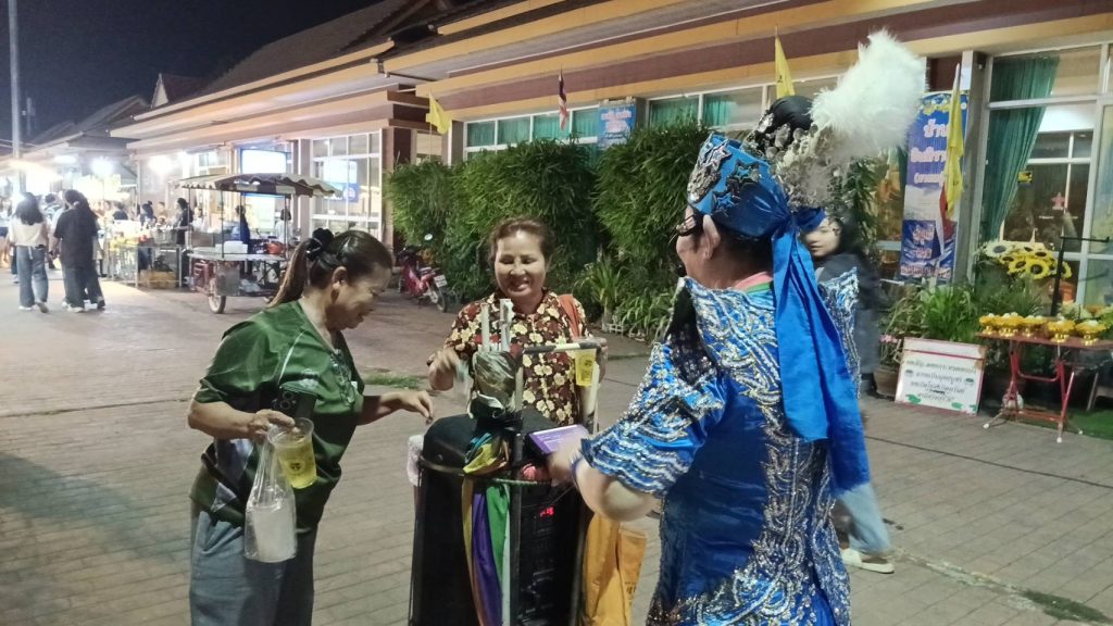 และได้พบเห็นลุง แต่งกายชุดลิเก ทาหน้าขาว แก้มแดง เดินร้องลิเกเสียงหวาน พร้อมด้วยรถเข็นลำโพงและตระกร้าใส่เงิน เดินเชิญชวนประชาชนที่เดินผ่านไปมาให้มาชื้อหาอาหารตามร้านค้าต่าง ๆ ส่วนลีลาการร้องลิเกไม่ธรรมดาเลยทีเดียว เดินผ่านร้านค้าใดก็จะร้องกล่าวทักทายพ่อค้าแม่ค้าขายผลไม้ ขายกับข้าว แถมหยอดคำหวานขอให้ค้าขายรวยๆ ให้มีสุขภาพร่างกายแข็งแรง หลายคนเห็นก็ชอบใจ ให้เงินเป็นค่าตอบแทนกับคำอวยพร 10 บาทบ้าง 20 บาทบ้าง