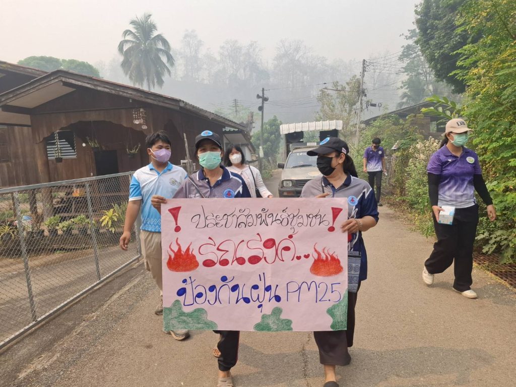 รณรงค์ป้องกันฝุ่นพิษด้วยการสวมหน้ากากอนามัยเพื่อป้องกันฝุ่นพิษที่ส่งผลกระทบต่อสุขภาพของประชาชนโดยตรง