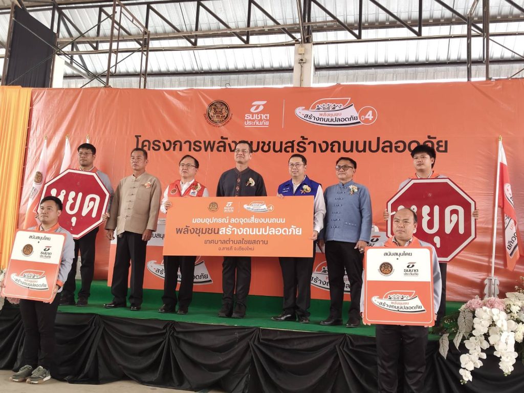 รองผู้ว่าราชการจังหวัดเชียงใหม่ บูรณาการลงนามความร่วมมือ – ธนชาตประกันภัย ,อำเภอสารภี และเทศบาลตำบลไชยสถาน จังหวัดเชียงใหม่ โครงการพลังชุมชนสร้างถนนปลอดภัย ปี 4 พร้อมจัดกิจกรรมติดตั้งอุปกรณ์และอาณัติสัญญาณความปลอดภัยทางการจราจร ลดความเสี่ยงการเกิดอุบัติเหตุบริเวณทางขึ้นสะพานต่างระดับบ้านศรีบุญเรือง ตำบลไชยสถาน อำเภอสารภี จังหวัดเชียงใหม่ เพิ่มระยะความปลอดภัยถนนรอบเมืองเชียงใหม่ต่อเนื่องซุปเปอร์ไฮเวย์สายลำปาง &#๘๒๑๑; เชียงใหม่ รองรับปริมาณรถทั้งจากในพื้นที่และนักท่องเที่ยวในช่วงวันหยุดยาวเทศกาลสงกรานต์ 2569 เมื่อวันที่ 3 เมษายน 2569 นายศิวกร บัวป้อง รองผู้ว่าราชการจังหวัดเชียงใหม่ เป็นประธานในพิธีลงนามบันทึกข้อตกลงความร่วมมือ โครงการพลังชุมชนสร้างถนนปลอดภัย ปี 4 ร่วมกับ นายสุวัฒน์ ระดมสุทธิกุล ที่ปรึกษาด้านการบริหารสินไหมทดแทน บริษัท ธนชาตประกันภัย จำกัด (มหาชน) นายเอนก ทาสัก นายอำเภอสารภี นายอังกูร จันทะวงค์ นายกเทศมนตรีตำบลไชยสถาน และนายจรัล ยะมาวิรันดร์ กำนันตำบลไชยสถาน พร้อมพิธีส่งมอบธงสัญลักษณ์โครงการฯ และการส่งมอบอุปกรณ์ลดจุดเสี่ยงบนถนนพร้อมอาณัติสัญญาณด้านความปลอดภัยทางถนน เพื่อยกระดับความปลอดภัยบริเวณทางขึ้นสะพานต่างระดับบ้านศรีบุญเรือง ภายใต้งบประมาณสนับสนุนจากธนชาตประกันภัย จำนวน 200,000 บาท ทั้งนี้ยังได้รับความร่วมมือจากเจ้าหน้าที่เทศบาลตำบลไชยสถาน ผู้นำท้องถิ่น ตัวแทนภาคีเครือข่าย และประชาชนในพื้นที่ ร่วมในกิจกรรมการทาสีตีเส้นจราจร (สีเทอร์โมพลาสติก) 12 ตารางเมตร ติดตั้งไฟสัญญาณ (ไฟกระพริบ) พร้อมป้ายบังคับหยุดแบบ บ.1 เพื่อให้ผู้ขับขี่หยุดรถหลังแนวเส้นที่กำหนดและตรวจสอบความปลอดภัยในจุดที่มีความเสี่ยงสูงก่อนการเคลื่อนรถในระยะต่อไป และติดตั้งชุดเสาไฟถนนปรับความสูงได้ด้วยเฟืองสะพานพร้อมโคมไฟแอลอีดี พลังงานแสงอาทิตย์ (Height Adjustable Pole with LED Solar Cell Street Light) 45 วัตต์ ซึ่งเป็นนวัตกรรมไทยที่ใช้พลังงานสะอาด แสงสว่างสม่ำเสมอ สามารถเปิด &# 8211; ปิดอัตโนมัติหรือตั้งเวลาได้ เพื่อเพิ่มทัศนวิสัยและความปลอดภัยในการขับขี่เวลากลางคืน โดยเทศบาลตำบลไชยสถาน รับผิดชอบดูแลและบำรุงรักษาให้อยู่ในสภาพพร้อมใช้งานอย่างต่อเนื่อง สร้างสภาพแวดล้อมบนท้องถนนที่ปลอดภัยสำหรับชุมชน และยกระดับคุณภาพชีวิตของประชาชนอย่างยั่งยืน ทั้งนี้ผู้ว่าราชการจังหวัดเชียงใหม่ยังได้ตอกย้ำให้ทางกำนันผู้ใหญ่บ้านในพื้นที่จังหวัดเชียงใหม่งดการจัดงานสังสรรค์ดื่มสุราและเครื่องดื่มที่มีแอลกอฮอล์ในที่ชุมชนเนื่องจากจ