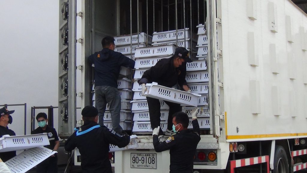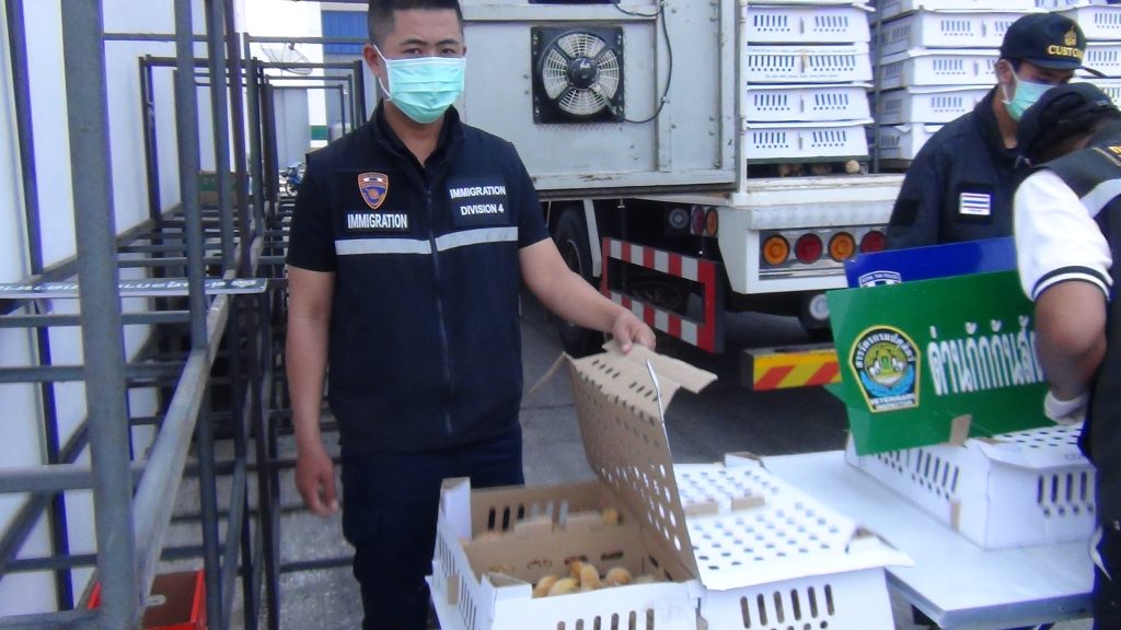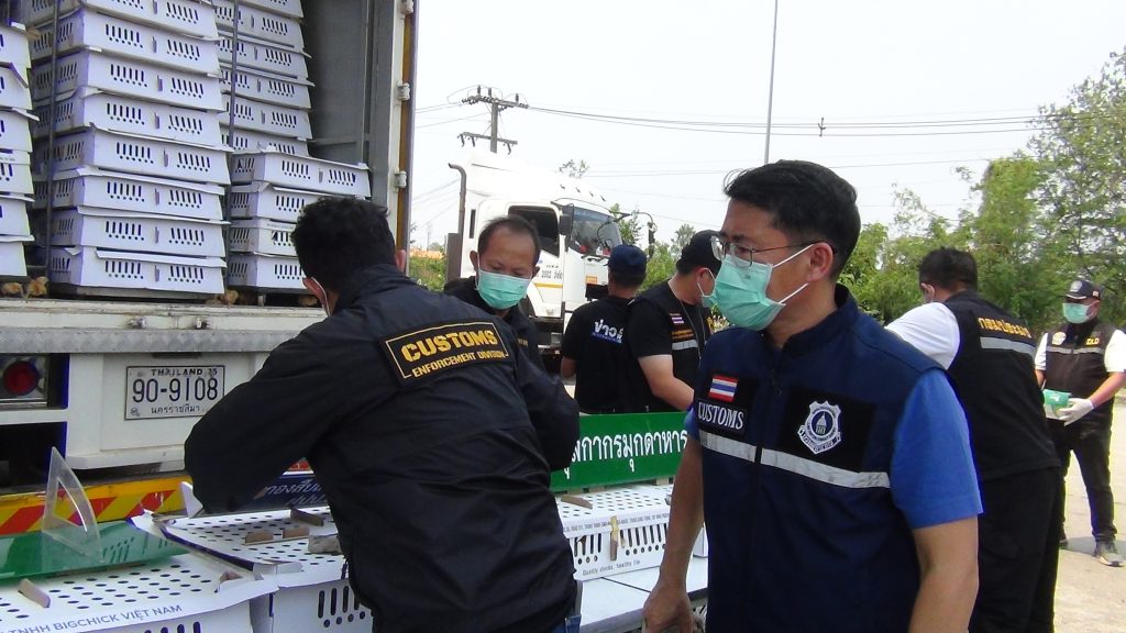 มุกดาหาร ศุลกากร สกัดจับรถบรรทุกลูกไก่เถื่อนซุกกล่องภาษาเวียดนาม