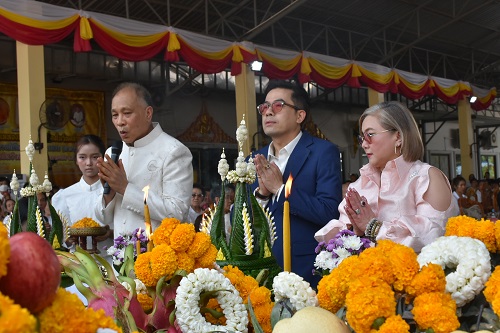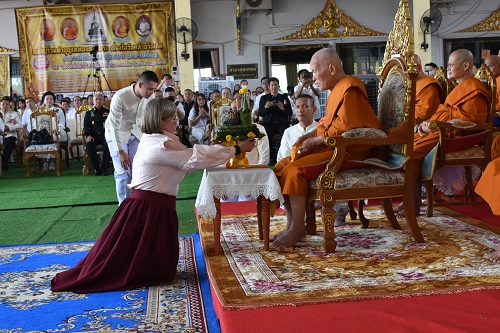 ฝ่ายฆราวาสนำโดยนายชวิศ ป้องขันธ์ นอภ.เป็นตัวแทน ผวจ.อุดรธานี นายเรืองไชย สุขเกษม (อ.อ๊อด) ประธานคณะจัดงาน นำพ่อค้าประชาชน ทั้งจาก กทม., ชลบุรี,อุดรธานี,นครพนม,หนองคาย,เลย,หนองบัวลำภู,มหาสารคาม และประเทศ สปป.ลาว มาร่วมจำนวนมากพิธีได้เริ่มด้วยพิธีสงฆ์