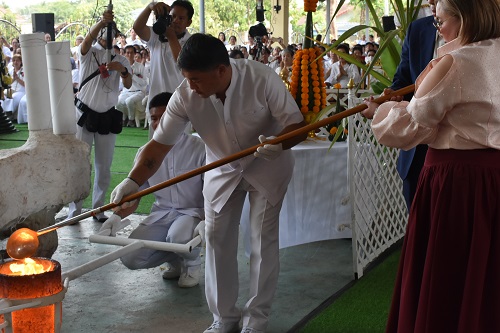 พระธรรมคุณาภรณ์ – คุณน้ำผึ้ง เททองหล่อ “องค์พระแก้วสารพัดนึก” วัด อ.อ๊อด ที่อุดร