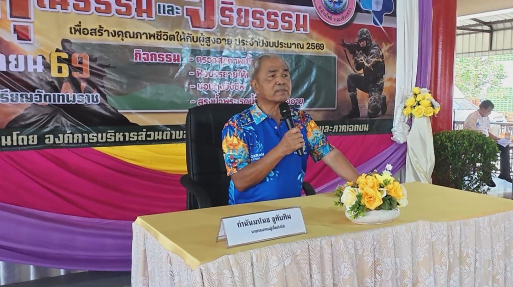 วันนี้ที่อาคารอเนกประสงค์ภายในวัดเทพราช อำเภอบ้านโพธิ์ จังหวัดฉะเชิงเทรา ทางองค์การบริหารส่วนตำบลเทพราช โดยการนำของนายอานนท์ ชูทับทิม นายกองค์การบริหารส่วนตำบล ได้จัดให้มีโครงการพัฒนาคุณธรรม และจริยธรรม เพื่อสร้างคุณภาพชีวิตให้กับผู้สูงอายุ ประจำปี 2569 สำหรับโครงกรดังกล่าวจัดขึ้นเพราะเล็งเห็นความสำคัญของบุคคลเมื่อกาวสู่วัยสูงอายุ ถือเป็นกลุ่มบุคคลผู้มีประสบการณ์ชีวิต ที่เคยผ่านเหตุการณ์ทางประวัติศาสตร์และได้น้อมนำแนวทางแห่งคุณธรรม จริยธรรม มาปรับใช้ในการดำเนินชีวิตจนประสบความสำเร็จ จึงมีบทบาทสำคัญอย่างยิ่งในการเป็น “ต้นแบบ” และ “ผู้ถ่ายทอด” เพื่อส่งต่อจิตสำนึกแห่งความกตัญญูกตเวทีและความรักในสถาบันหลักของชาติไปสู่คนรุ่นหลัง อันจะก่อให้เกิดการเสริมสร้างความเข้มแข็งของผู้สูงอายุที่เป็นเสาหลักในการสืบทอดความภาคภูมิใจในความเป็นไทย โดยในภาคเช้าทางองค์การบริหารส่วนตำบลเทพราชได้จัดให้มีพิธีทำบุญทางศาสนา จากนั้นได้จัดให้มีการบรรยายพิเศษในหัวข้อ “จากรุ่นสู่รุ่น การสืบสานจิตสำนึกรักชาติ ศาสนา พระมหากษัตริย์ โดยได้เชิญ จ.ส.อ.วรจิตต์ น้อยบัวทิพย์ วิทยากรพิเศษจากกองพันทหารราบที่ 1 กรมทหารราบที่ 112 มาบรรยายให้ความรู้เกี่ยวกับประวัติชาติไทย เพื่อปลูกจิตสำนึกรักชาติและส่งต่อความภูมิใจในความเป็นไทยจากรุ่นสู่รุ่น จากนั้นทางองค์การบริหารส่วนตำบลเทพราชได้เชิญ กำนันมาโนช ชูทับทิม นายกสมาคมผู้เลี้ยงไก่ไข่ มาเป็นวิทยากรพิเศษ บรรยายในหัวข้อ “ ร่มโพธิ์ร่มไทร หัวใจรักชาติ” โดยเป็นการนำหลักปรัชญาเศรษฐกิจพอเพียงมาปรับใช้ในการดูแลกายและใจให้พึ่งพาตนเองได้ เสริมสร้างศักดิ์ศรีและคุณค่าในตนเอง เพื่อเป็นพลังสำคัญในการพัฒนาชุมชน ท้องถิ่น ให้เกิดความร่มเย็นเป็นสุข จากนั้นไดมีการบรรยายพิเศษในหัวข้อ “ดูแลกาย ให้พ้นโรค ถือเป็นโชค ของชีวิต” โดยนายศันสนะ วงศ์ษา นักกายภาพบำบัด มาให้ความรู้และวิธีการขยับร่างกายของผู้สูงอายุ เพื่อให้เกิดประสิทธิภาพสูงสุดกับร่างกาย