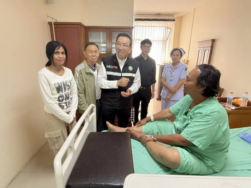 จังหวัดราชบุรี เมื่อวันที่ 3 เมษายน 2569 นายแพทย์วิบูลย์ ภัณฑบดีกรณ์ ผู้อำนวยการโรงพยาบาลบ้านโป่ง พร้อมด้วยนายแพทย์นริศ ติวะตันสกุล และคณะเข้าเยี่ยม มอบกระเช้า ให้นายหมวดตรีประสาท กุลเรือง ประธานชุมชนซอยโรงธูป เขตเทศบาลเมืองบ้านโป่ง ที่ปรึกษาและเลขานุการ(คพรฟ,)ตำบลบ้านโป่ง เนื่องจากช่วงขาด้านซ้ายประสบอุบัติเหตุทำให้เส้นเลือดอุดตันได้เข้ารักษาพยาบาลที่โรงพยาบาลบ้านโป่ง ได้รับความอนุเคราะห์และอำนวยความสะดวกจากเจ้าหน้าที่พยาบาลทุกท่านเป็นอย่างดี โดยนายแพทย์ ธาม์ ดีสมุทร รองผู้อำนวยการด้านบริการปฐมภูมิ เป็นแพทย์เจ้าของคนไข้ และมีนางสาวนันทน์อนพัช เอี่ยมสกุล หัวหน้างานประชาสัมพันธ์ นางสาวจีรวรรณ มิเกรียง พยาบาลวิชาชีพชำนาญการพิเศษ หัวหน้าหอผู้ป่วยศัลยกรรมชาย ร่วมต้อนรับ / ณ โรงพยาบาลบ้านโป่ง อ,บ้านโป่ง จ,ราชบุรี / อมร ราชบุรี