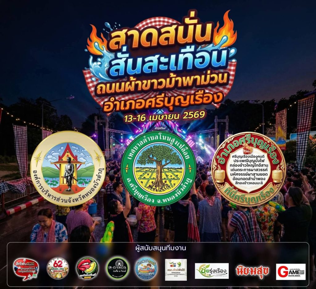เมื่อเร็วๆนี้ผู้สื่อข่าวรายงานว่าภายในวัดสว่างอารมณ์ ตำบลเมืองใหม่ อำเภอศรีบุญเรือง จังหวัดหนองบัวลำภู นายสุรศักดิ์ อักษรกุล ผู้ว่าราชการจังหวัดหนองบัวลำภู พร้อมด้วย นางศรัณยา สุวรรณพรหม นายกองค์การบริหารส่วนจังหวัดหนองบัวลำภู นายธนายุทธ ใยแก้ว นายอำเภอศรีบุญเรือง นางปาลิดา คำพิบูลย์ นายกเทศมนตรีตำบลโนนสูงเปลือย พ.ต.ท.นรินทร์ โคตรคำจันทร์ รอง ผกก.ป.สภ.ศรีบุญเรือง ร่วมแถลงข่าวความพร้อมการจัดงานสืบสานประเพณีสงกรานต์ ประจำปี 2569 ภายใต้สโลแกน “สาดสะนั่น สั่นสะเทือน ถนนผ้าขาวม้า” โดยมีพระอุดมคุณาภรณ์ เจ้าอาวาสวัดสว่างอารมณ์ รองเจ้าคณะจังหวัดหนองบัวลำภู และเลขานุการเจ้าคณะภาค 2 ร่วมสร้างสีสัน ช่วงเทศกาลมหาสงกรานต์ ระหว่างวันที่ 13-16 เมษายน 2569
