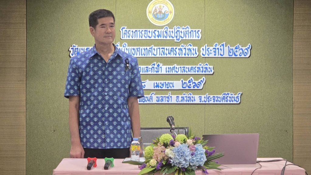 เมื่อวันที่ 7 เมษายน 2569 ณ โรงแรมหัวหินแกรนด์แอนด์พลาซ่า อำเภอหัวหิน จังหวัดประจวบคีรีขันธ์ เทศบาลนครหัวหิน จัดพิธีเปิดโครงการฝึกอบรมเชิงปฏิบัติการวัฒนธรรมท้องถิ่นในเขตเทศบาลนครหัวหิน ประจำปี 2569