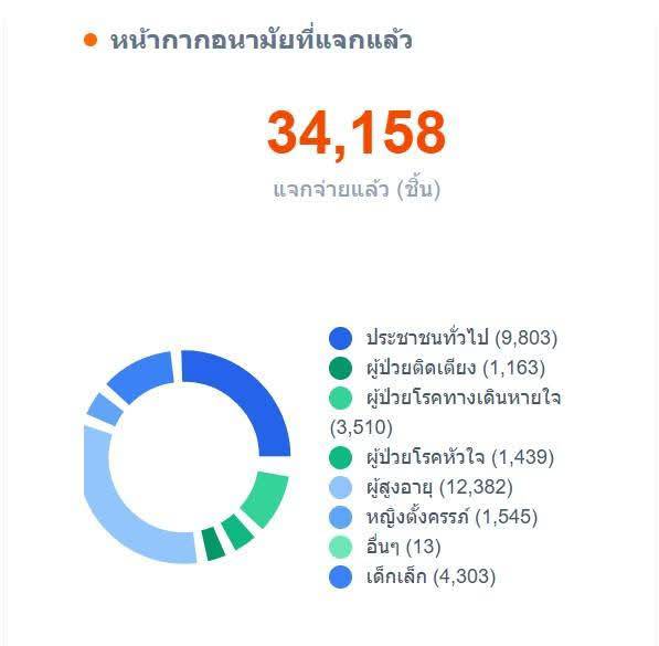 การสนับสนุนอุปกรณ์ป้องกัน: ดำเนินการแจกจ่ายหน้ากากอนามัย (Surgical Mask) ให้กับกลุ่มเปราะบาง 7 กลุ่มไปแล้วกว่า 35,000 ชิ้น และอยู่ระหว่างการจัดหาเพิ่มเติม