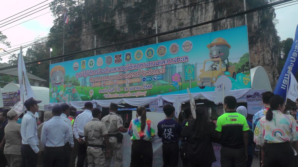 จังหวัดกระบี่เปิดศูนย์ป้องกันและลดอุบัติเหตุทางถนนทางทะเลเทศกาลสงกรานต์ปี 2569 ตั้งเป้า 7 วันอันตรายอุบัติเหตุเกิดไม่เกิน 28 ครั้งแอดมิทไม่เกิน 28 คนเสียชีวิตไม่เกิน 2 คน
