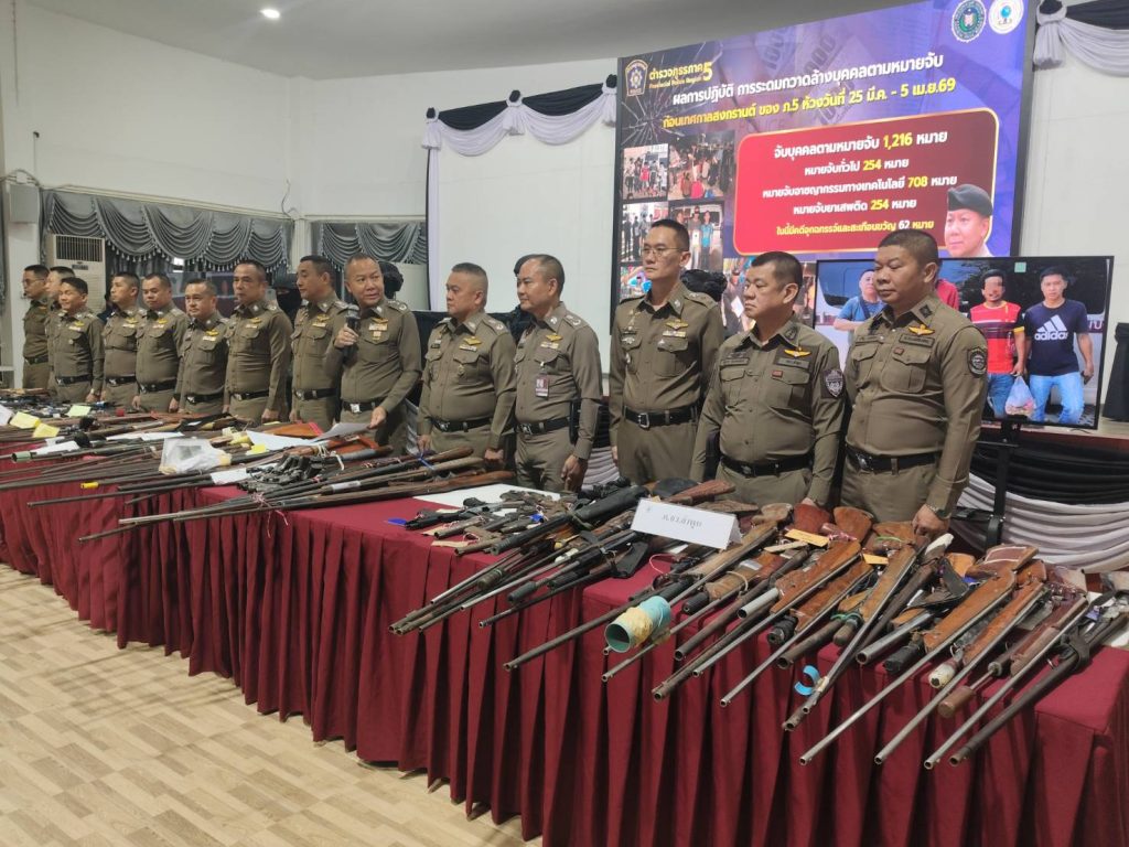 ผบช.ภาค 5 แถลงผลงานกวาดล้างใหญ่ก่อนสงกรานต์ ทลายเครือข่ายบัญชีม้า-ยึดอาวุธปืน ระเบิด พร้อมเตือนแก๊งวัยรุ่นอย่าสร้างความเดือดร้อนรำคาญให้สุจริตชนมีโทษหนัก