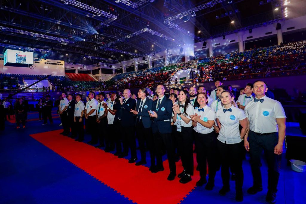 ร่วมด้วย นางสาวพนิดา แก้วมาก รองผู้อำนวยการสำนักวัฒนธรรม กีฬา และการท่องเที่ยวกรุงเทพมหานคร, นายไผ่ ลิกค์ นายกสมาคมกีฬาคิกบ๊อกซิ่งแห่งประเทศไทย, พลเอก สุรชาติ จิตต์แจ้ง นายกสมาคมกีฬาคาราเต้แห่งประเทศไทย, พลโท พัฒนชัย พัฒนเจริญ หัวหน้าสำนักตุลาการทหารและตุลาการพระธรรมนูญหัวหน้าศาลทหารสูงสุด, เรืออากาศตรีหญิง ทิรา บุญาณี กิตติกรณ์ เลขาธิการสมาคมกีฬาคิกบ๊อกซิ่งแห่งประเทศไทย พร้อมคณะนักกีฬาและเจ้าหน้าที่จาก 32 ประเทศทั่วโลก รวมกว่า 1,200 คน เข้าร่วมในพิธี