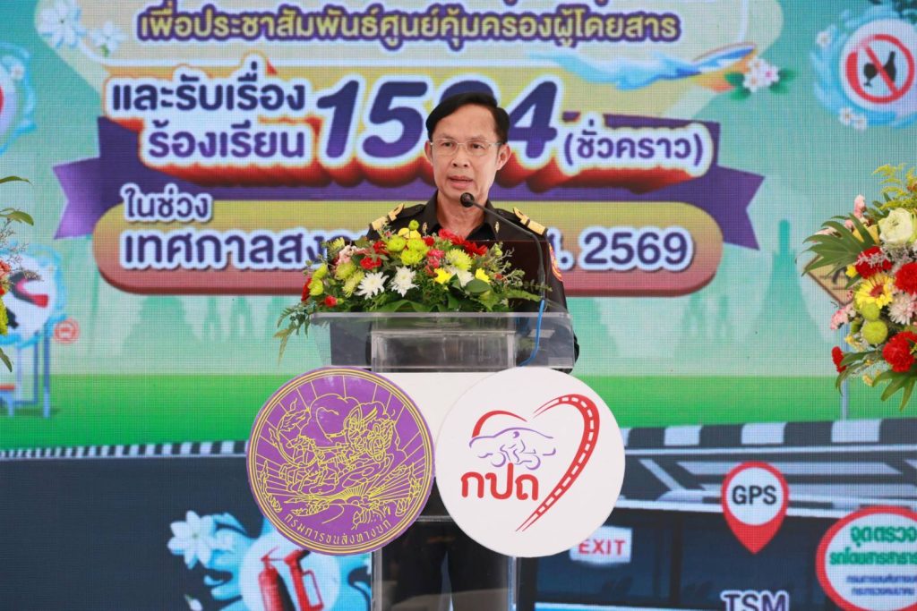 วันนี้ (9 เมษายน 2569) เวลา 10.30 น. ณ สถานีขนส่งผู้โดยสารกรุงเทพฯ (จตุจักร) นายชีพ น้อมเศียร รองอธิบดีกรมการขนส่งทางบก เป็นประธานในพิธีจัดกิจกรรมรณรงค์ป้องกันและลดอุบัติเหตุทางถนน เพื่อประชาสัมพันธ์ ศูนย์คุ้มครองผู้โดยสารและรับเรื่องร้องเรียน 1584 (ชั่วคราว) ในช่วงเทศกาลสงกรานต์ 2569 โดยกิจกรรมดังกล่าวอยู่ภายใต้โครงการรณรงค์ป้องกันและลดอุบัติเหตุทางถนนในช่วงเทศกาลสำคัญซึ่งมีจุดมุ่งหมายเพื่อให้บริการรับเรื่องร้องเรียนและป้องกันมิให้ผู้โดยสารถูกเอารัดเอาเปรียบจากการใช้บริการรถโดยสารสาธารณะ ตลอดจนช่วยเหลือผู้โดยสารให้เดินทางถึงที่หมายอย่างปลอดภัยในช่วงเทศกาลสงกรานต์