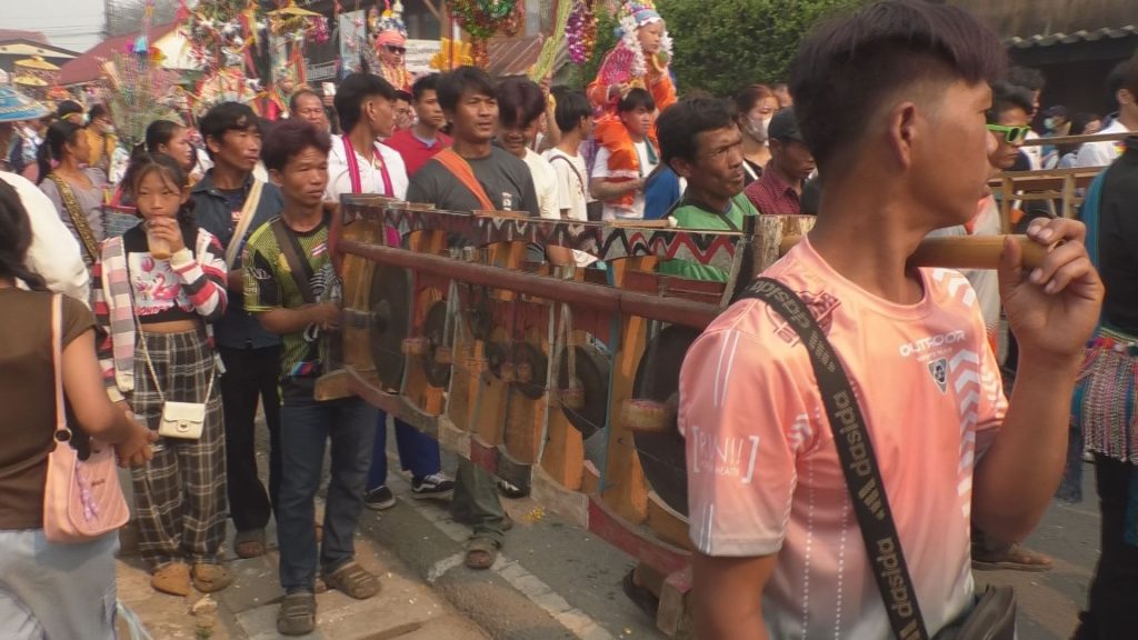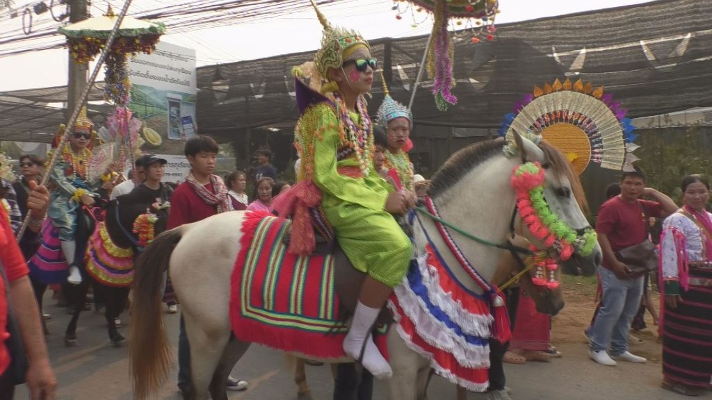 ภายในงานชาวบ้านและกลุ่มชาติพันธุ์ชาวไทยใหญ่ ได้ร่วมกันจัดขบวนแห่ “ลูกแก้ว ส่างลอง ” ก่อนนำบุตรหลานเข้าประกอบพิธีบรรพชาเป็นสามเณร โดยมีการแต่งกาย ลักษณะคลายเจ้าชายน้อย ประดับเครื่องทรงอย่างวิจิตร นั่งบนหลังม้า หรือ ขึ้นขี่บ่าของพี่เลี้ยง เพื่อไม่ให้เท้าสัมผัสกับพื้น สะท้อนคติความเชื่อก่อนเข้าสู่ร่มกาสาวพัสตร์ พร้อมได้นำเครื่องดนตรี ตีฆ้อง เต้นรำ เคลื่อนขบวนแห่กันอย่างสนุกสนาน ไปตามชุมชน ระยะทาง 3 กิโลเมตร มุ่งสู่วัดอินทราม อำเภอเชียงดาว ท่ามกลางบรรยากาศที่มีประชาชนร่วมชมและร่วมทำบุญตลอดเส้นทาง