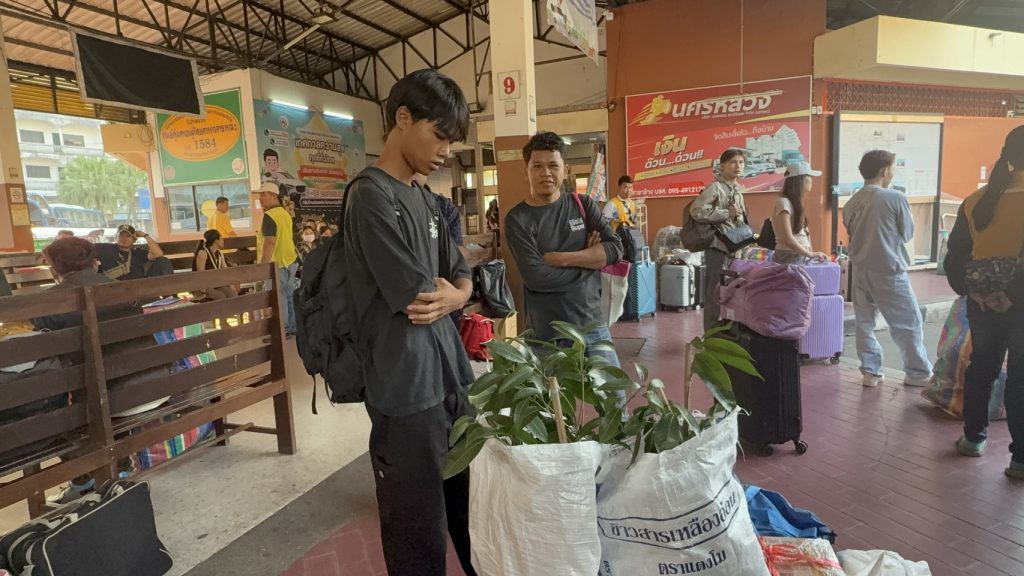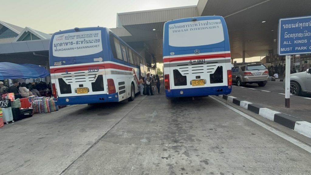 10 04 69 เวลา 10.30 น. ผู้สื่อข่าวรายงาน บรรยากาศการเดินทางในพื้นที่จังหวัดมุกดาหาร ช่วงก่อนเข้าสู่เทศกาลสงกรานต์และเทศกาลปีใหม่ลาว พบว่าที่สถานีขนส่งผู้โดยสารจังหวัดมุกดาหาร อำเภอเมือง จังหวัดมุกดาหาร เป็นไปอย่างคึกคัก มีแรงงานชาว สปป.ลาว ที่เดินทางกลับจากการทำงานในหลายจังหวัดของประเทศไทย ทยอยกลับภูมิลำเนาอย่างต่อเนื่อง เพื่อเดินทางต่อไปยังด่านพรมแดนสะพานมิตรภาพไทย-ลาว แห่งที่ 2 (มุกดาหาร–สะหวันนะเขต)