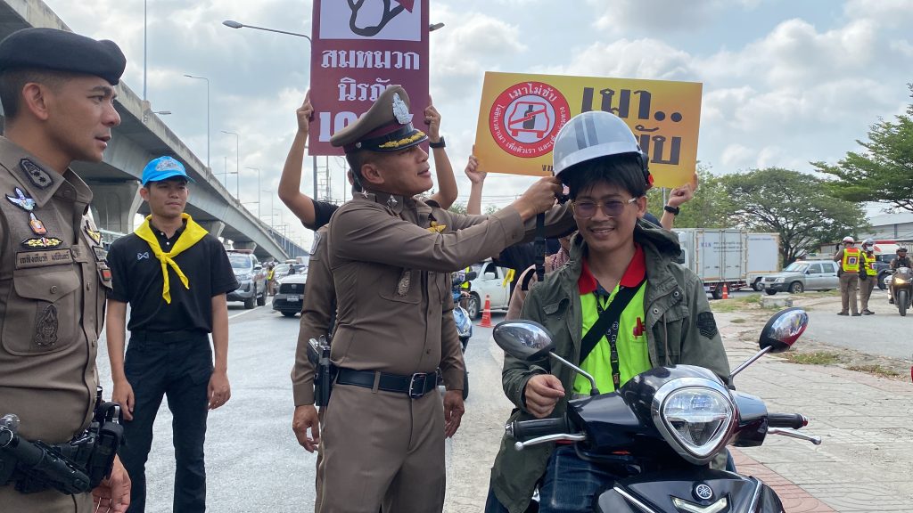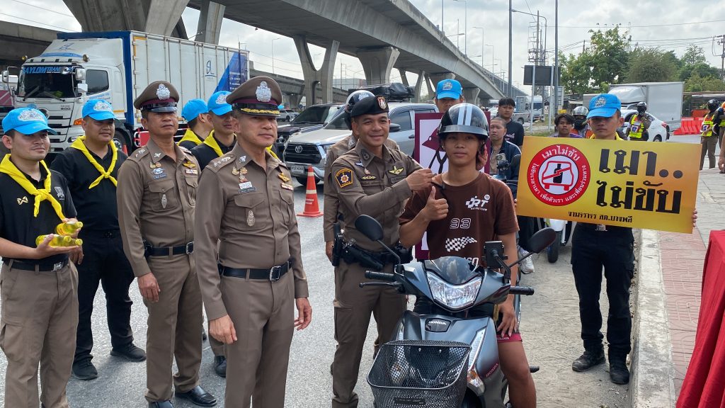 เมื่อวันที่ 10 เม.ย.69 เวลา 09.00 น. พ.ต.อ.ไพโรจน์ เพ็ชรพลอย ผกก.สภ.บางพลี พ.ต.ท.เถลิงเกียรติ มณีอินทร รอง ผกก.ป.สภ.บางพลี พ.ต.ท.ภาวัต รัตนาภรณ์ รอง ผกก.สส.สภ.บางพลี พ.ต.ท.ยุทธชัย สุดเสน่ห์ สว.จร.สภ.บางพลีพ.ต.ท.หญิงณัฐธยาน์ พัชระบุญเรือง สว.อก.สภ.บางพลี พ.ต.ท.ศรีพงษ์ น้อยสุวรรณ์ สวป.สภ.บางพลี พ.ต.ต.สันติราษฏร์ เงินมั่น สว.สส.สภ.บางพลี พร้อมข้าราชการตำรวจ สภ.บางพลี ข้าราชการตำรวจจิตอาสา สภ.บางพลี ร่วมปล่อยแถวการ อำนวยความสะดวกด้านการจราจรป้องกันและลดอุบัติเหตุทางถนนช่วงเทศกาลสงกรานต์ ประจำปี 2569 และแจกหมวกกันน็อก น้ำดื่ม เครื่องชูกำลัง ณ จุดสกัดคลองส่งน้ำ สภ.บางพลี ต.บางโฉลง อ.บางพลี จ.สมุทรปราการ