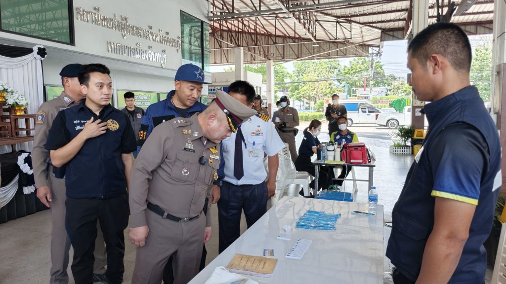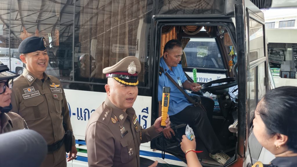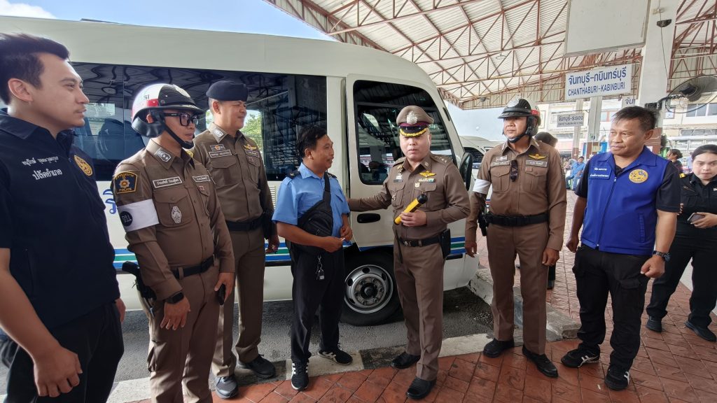 วันที่ 10 เมษายน 2569 ที่สถานีขนส่งผู้โดยสารจังหวัดจันทบุรี ตำบลวัดใหม่ อำเภอเมือง จังหวัดจันทบุรี พันตำรวจเอกธราเทพ ตูพานิช รองผู้บังคับการตำรวจภูธรจังหวัดจันทบุรี พร้อมด้วย พ.ต.ท.คมกฤต แจ่นประโคน รองผู้กำกับการจราจร สภ.เมืองจันทบุรี, พ.ต.ท.รัตนศักดิ์ รัตนชูโชค สารวัตรจราจร สภ.เมืองจันทบุรี และ พ.ต.ท.กมล โพธิ์ทองนาค สารวัตรกองกำกับการสืบสวน ภ.จว.จันทบุรี
