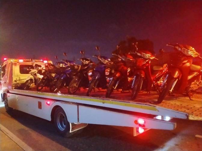 โดยก่อนหน้านี้ช่วงปลายเดือนมีนาคมที่ผ่านมา บนถนนเลียบคลองส่งน้ำสุวรรณภูมิ ในการสกัดจับกลุ่มเด็กแว้นรวมตัวและผิดกฎหมาย ซึ่งสามารถยึดรถได้รวม 17 คัน ซึ่งทั้งหมดถูกส่งตัวพร้อมของกลางให้พนักงานสอบสวนดำเนินคดีตามกฎหมาย ส่วนรายใดที่มีหลักฐานแน่ชัดว่ามีการจัดแข่งขันรถในทาง ซึ่งนอกจากจะถูกดำเนินคดีแล้วยังเสนอศาลสั่งลิบของกลางอีกด้วย