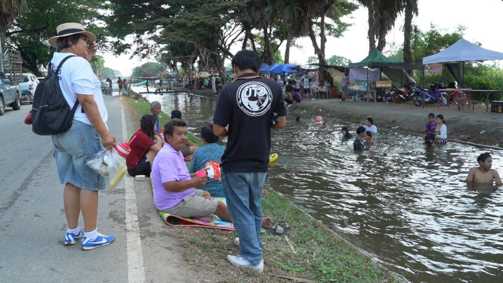 โดยบรรยากาศวันนี้ตั้งแต่ช่วงเช้า ก็มีบรรดาร้านค้าเริ่มทยอยนำอุปกรณ์เข้าประจำที่กันแล้ว และก็มีกลุ่มหนุ่มสาว จากสถานที่ต่าง ๆ เริ่มทยอยเข้ามาเล่นน้ำเพื่อคลายร้อนกันอย่างสนุกสนาน มีการนำเครื่องเสียงมาเปิด เพื่อสร้างบรรยากาศ มีการใช้แป้งดินสอพองทาหน้าซึ่งกันและกัน รวมทั้งใช้เครื่องฉีดน้ำเป็นละอองฝอย ฉีดน้ำใส่ผู้ที่ผ่านไปมาด้วย จึงเป็นบรรยากาศที่ชุ่มฉ่ำและคลายร้อนเป็นอย่างดี