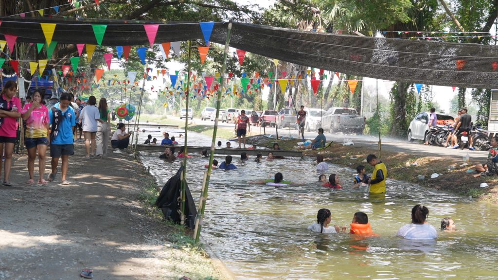 โดยบรรยากาศวันนี้พบว่าที่ “คลองตาเล้ง” ม.10 ต.สระพัฒนา อ.กำแพงแสน จ.นครปฐม มีบรรดาร้อนค้าทยอยขนอุปกรณ์ต่าง ๆ เข้าจับจองพื้นที่ริมคลองกันยาวเหยียดกว่า 1 กม. และมีกลุ่มหนุ่มสาว รวมทั้งผู้ปกครองนำลูกหลานมาเล่นน้ำกันจำนวนมาก เนื่องจากคลองตาเล้งแห่งนี้ เป็นที่รู้จักกันดีเพราะทุก ๆ ปี ในช่วงเดือนเมษายน และเป็นช่วงเทศกาลสงกรานต์ อากาศจะร้อนอบอ้าว ดังนั้นจึงมีกลุ่มหนุ่มสาวมาเล่นน้ำเพื่อคลายร้อนกันเป็นประจำ เพราะสถานที่แห่งนี้ตลอดสองริมฝั่งคลอง จะมีต้นไม้ใหญ่แผ่กิ่งก้านสาขาจนดูร่มรื่น และอากาศดีตามธรรมชาติ จากนั้นมาทุกปีก็จะมีการรวมตัวกันมาเล่นน้ำแห่งนี้กันเพิ่มขึ้นเรื่อย ๆ ดังนั้นเพื่อให้เกิดความปลอดภัย และต้องมีการดูแลความสะอาดในพื้นที่ นายสุวัจชัย เกียรติสกุลทอง นายก อบต.สระพัฒนา จึงพัฒนาพื้นที่แห่งนี้ให้กลายเป็น ที่เล่นน้ำในช่วงเทศกาลสงกรานต์ ระหว่างวันที่ 10-15 เม.ย.69 โดยจะมีพิธีเปิดงานสงกรานต์ “คลองตาเล้ง” อย่างเป็นทางการในวันที่ 11 เม.ย.69 นี้ ซึ่งคาดว่าจะมีประชาชนกลุ่มผู้เล่นน้ำจากหลายจังหวัดเข้ามาร่วมงานประเพณีครั้งนี้นับหมื่นคน และขณะนี้มีร้านค้าจองสถานที่เพื่อรองรับไว้แล้ว ถึง 260 ร้านค้า