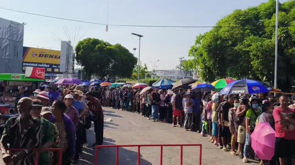 ซึ่งมีข้อตกลงเพื่อที่จะได้ให้ประชาชนได้รับข้าวสารอย่างทั่วถึงผู้ที่มารับข้าวสารจะต้องนำนิ้วไปจุ่มในสีน้ำมันที่ทางเจ้าหน้าที่จัดเตรียมไว้เป็นสีส้ม ทั้งนี้ถ้าครอบครัวใดมากันหมดบ้านก็สามารถรับได้เพียงคนละ 1 ถุงเท่านั้น โดยในการสอบครั้งนี้พบว่ามีประชาชนที่ร่างกายพิการมารอรับข้าวสารและเดินทางมาจากจังหวัดใกล้เคียงด้วย ขณะเดียวกันประชาชนที่เดินทางมามารอรับหมวกกันน็อคจะต้องเตรียมใบขับขี่รถจักรยานยนต์มาแสดง พร้อมกับต้องใช้นิ้วจุ่มสีน้ำมันเป็นขาวก่อนที่จะรับหมวกกันน็อคป้องกันการหมุนเวียนแจกจ่ายให้ทั่วถึง