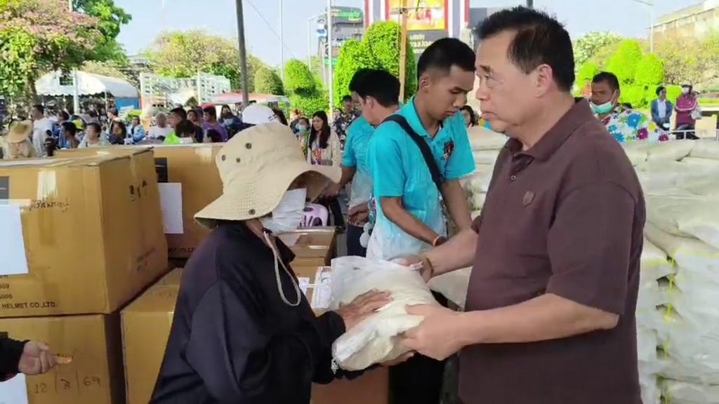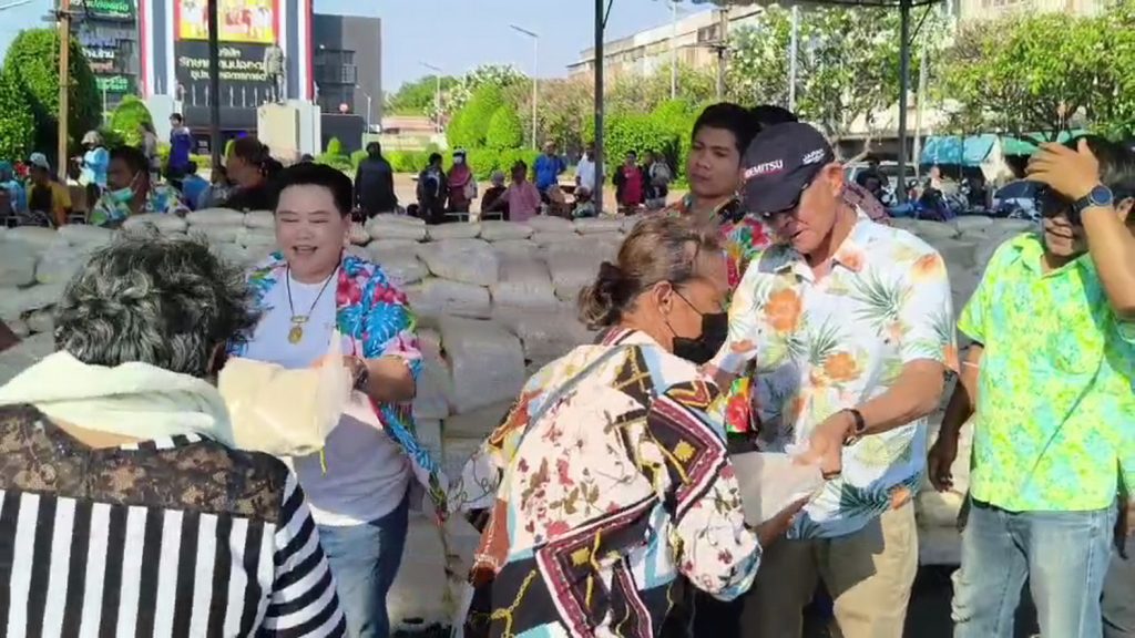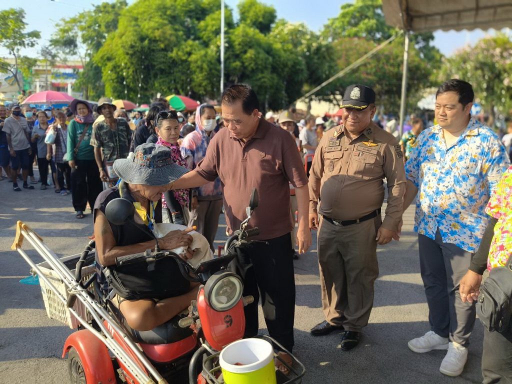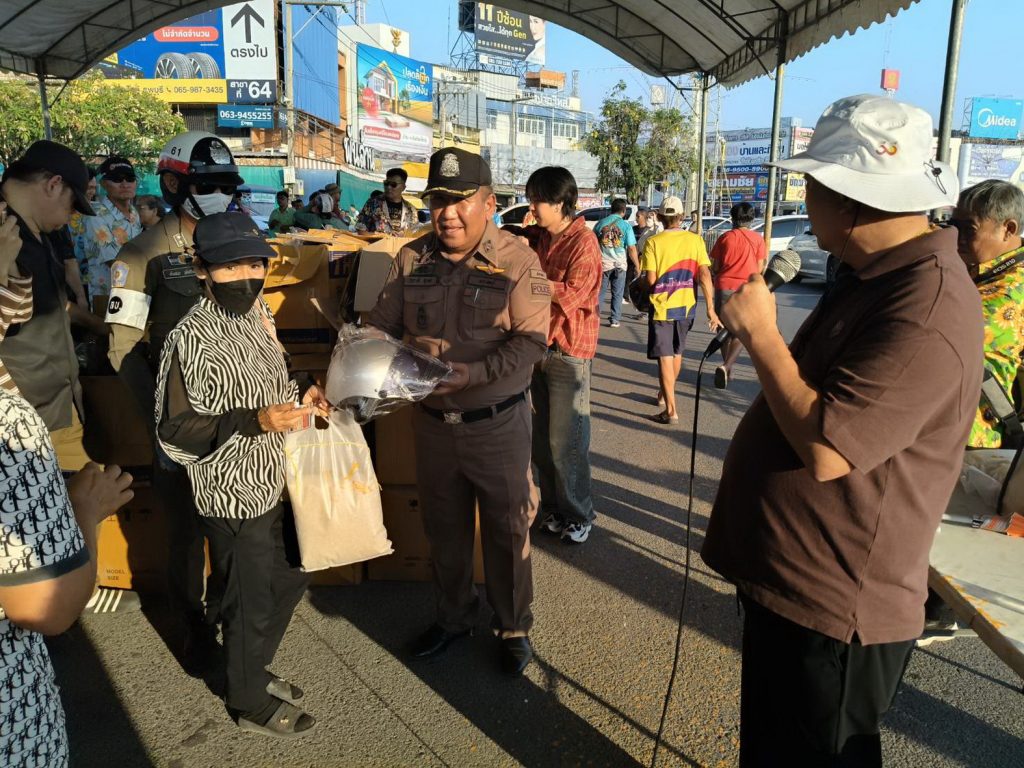 นายกเล็กควักกระเป๋าแจกข้าวและหมวกกันน็อคกว่าครึ่งล้าน
