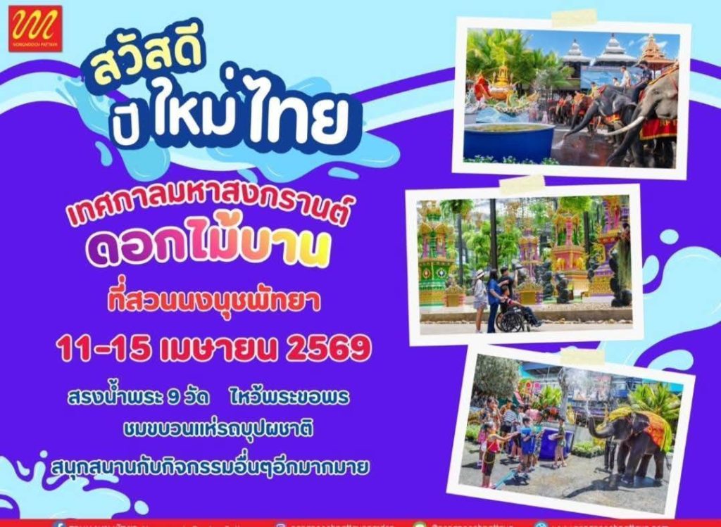 สวนนงนุช พัทยา จ.ชลบุรี ขอเชิญชวนประชาชน ท่องเที่ยวเทศกาลวันสงกรานต์ระหว่าง วันที่ 11-15 เมษายน 2569