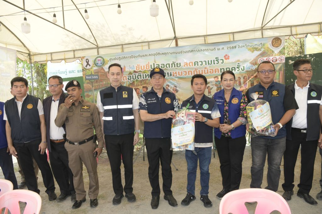 ในการลงพื้นที่ครั้งนี้ รองผู้ว่าราชการจังหวัดนนทบุรีได้มอบสิ่งของบำรุงกำลังใจแก่เจ้าหน้าที่ พร้อมกำชับให้บังคับใช้กฎหมายจราจรอย่างเคร่งครัด โดยเฉพาะมาตรการ “ดื่มไม่ขับ” และมอบหมวกนิรภัยให้กับประชาชน เพื่อลดความสูญเสียและสร้างความปลอดภัยให้แก่ประชาชนในช่วงเทศกาลสงกรานต์อย่างสูงสุด