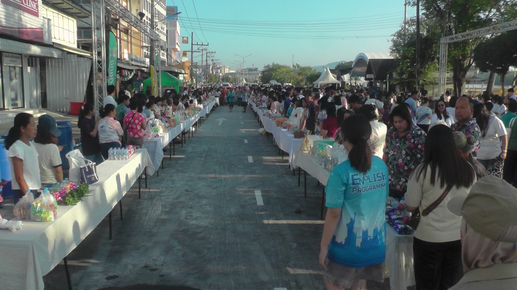 มวลมหาชนนักท่องเที่ยวร่วมทำบุญตักบาตรพระวันมหาสงกรานต์ชาวกระบี่