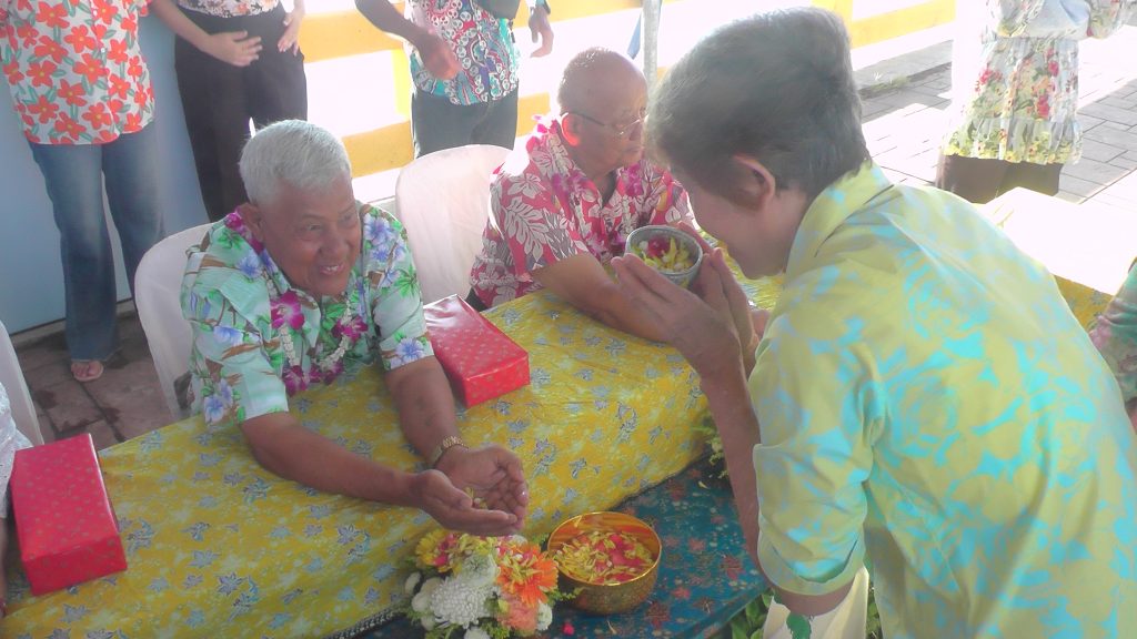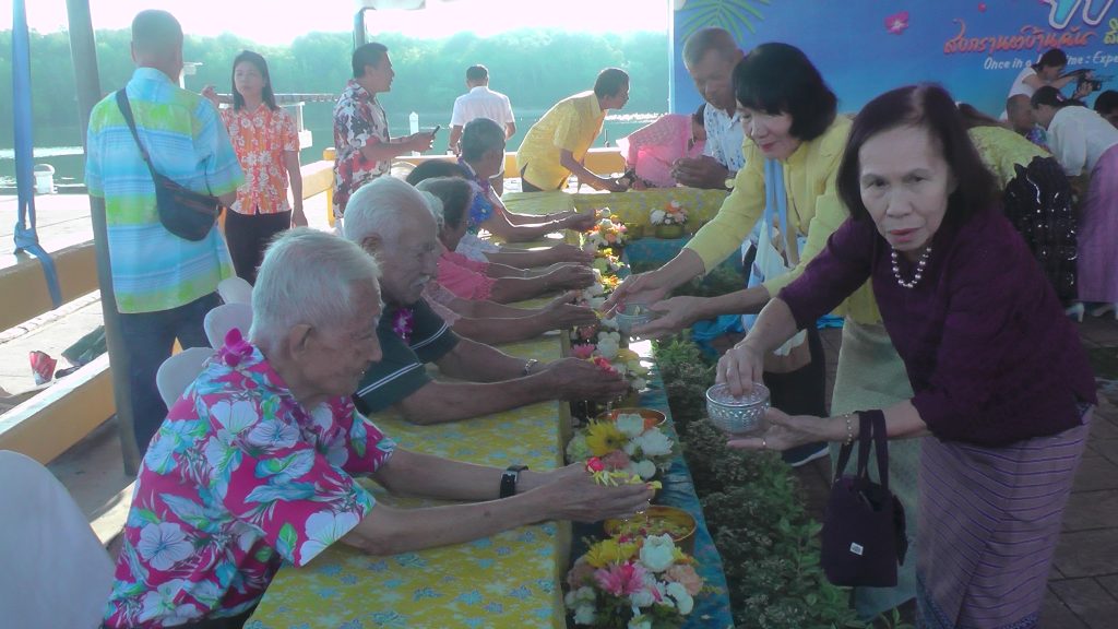 ต่อจากนั้นนายอังกูร ศีลาเทวากูล ผู้ว่าราชการจังหวัดกระบี่ พร้อมด้วยหัวหน้าส่วนราชการ ข้าราชการตุลาการ ข้าราชการพลเรือน ตำรวจ ทหาร ประชาชนชาวจังหวัดกระบี่ ตลอดจนนักท่องเที่ยวชาวๆไทยและชาวต่างชาติ ร่วมทำบุญตักบาตรข้าวสารอาหารแห้งและน้ำดื่น แด่พระภิกษุสงฆ์ และร่วมสรงน้ำพระพุทธสิหิงค์ รูปเหมือนพระราชสุตกวี หรือหลวงปูสิงห์ อดีตเจ้าอาวาสวัดแก้วโกรวารามพระอารามหลวงจังหวัดกระบี่ พร้อมรดน้ำขอพรจากผู้สูงอายุ