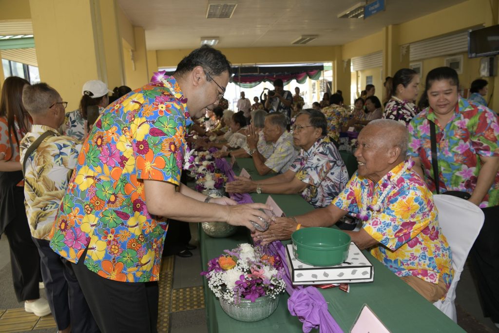 ในโอกาสนี้ นายเชษฐา โมสิกรัตน์ ผู้ว่าราชการจังหวัดนนทบุรี ได้กล่าวอวยพรเนื่องในประเพณีวันสงกรานต์และวันผู้สูงอายุแห่งชาติ โดยเน้นย้ำถึงความสำคัญของความรักความผูกพันในครอบครัวและการรักษาประเพณีอันดีงามให้สืบทอดไปสู่คนรุ่นหลัง พร้อมทั้งขอให้ผู้เข้าร่วมงานทุกท่านประสบแต่ความสุขและมีสิริมงคลในการเริ่มต้นปีใหม่ไทยอย่างปลอดภัย