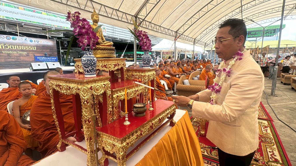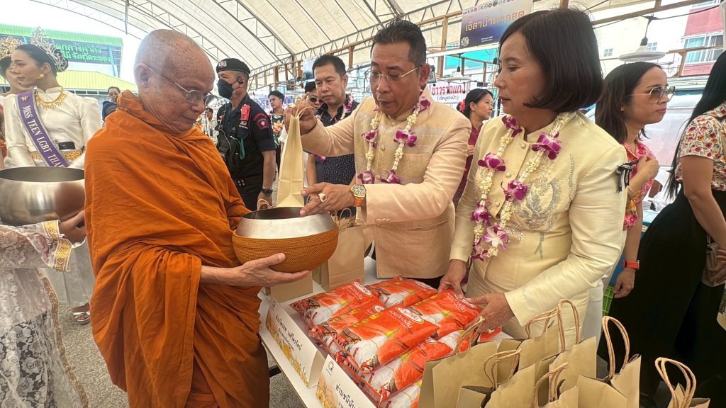 มาร่วม มีศาลระยอง หัวหน้าส่วนราชการ อบจ. สมาคม ชมรมต่างๆมาร่วมมประชาชนมาร่วมตักบาตร 500คน ยาว200เมตร หลังจากทำบุญตักบาตร รดน้ำเกจิอาจารย์วัดดัง9วัด ช่วงค่ำเปิดคอนเสิร์ทวงดนตรีฟรีเพื่อให้หนุ่มสาวได้มาร่วมสนุกกันเต็มที่