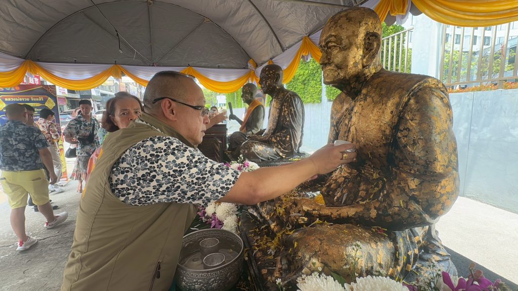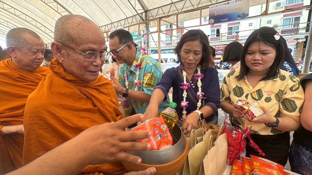 ชาวไทยพุทธตักบาตรขึ้นปีใหม่ไทยสงกรานต์กันแน่นถนนทุเรียน