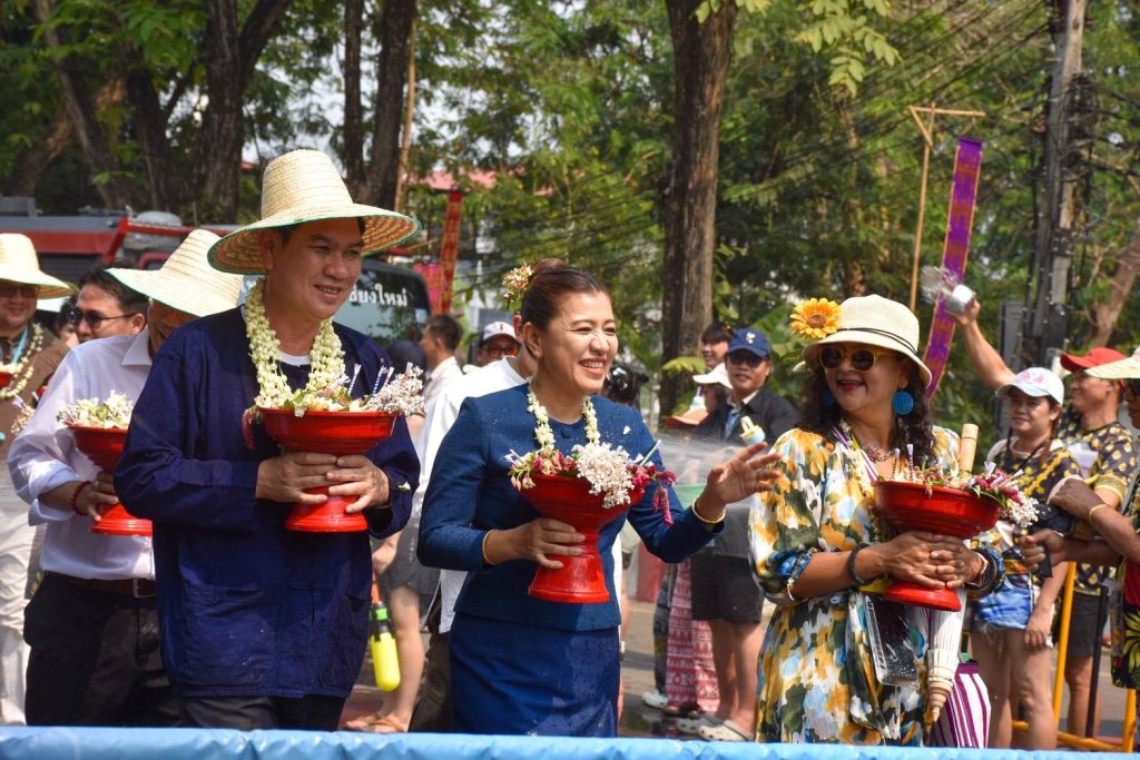 เมื่อตอนบ่าย 13 เม.ย. 69 ที่ บริเวณแยกสันป่าข่อย ถ.เจริญเมือง ต.วัดเกต อ.เมืองเชียงใหม่ จ.เชียงใหม่ นายรัฐพล นราดิศร ผู้ว่าราชการจังหวัดเชียงใหม่ เป็นประธานประกอบพิธีอาราธนาพระพุทธสิหิงค์ องค์พระคู่บ้านคู่เมืองของจังหวัดเชียงใหม่ และพระพุทธรูปสำคัญจากวัดต่างๆ เพื่อนำออกแห่ไปรอบตัวเมืองเชียงใหม่ ให้ประชาชนและนักท่องเที่ยวได้สักการะและสรงน้ำเป็นสิริมงคลในประเพณีสงกรานต์ ประจำปี 2569