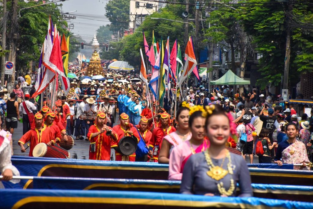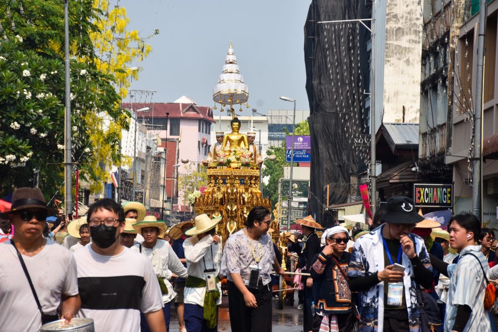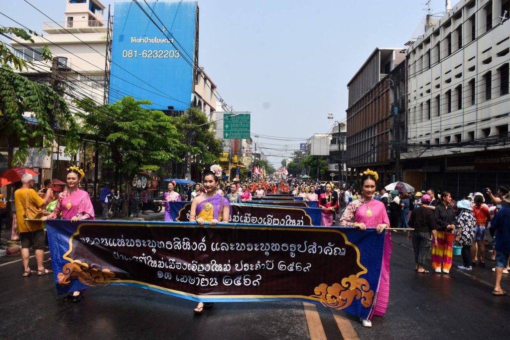 ชาวเชียงใหม่และนักท่องเที่ยว ร่วมสรงน้ำพระพุทธสิหิงค์และพระพุทธรูปสำคัญ เสริมสิริมงคลตามประเพณีสงกรานต์ของชาวล้านนา เนืองแน่นตลอดเส้นทาง