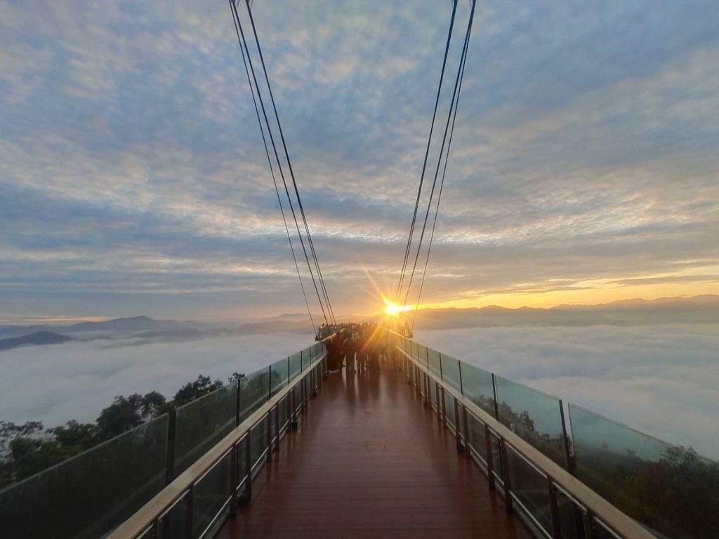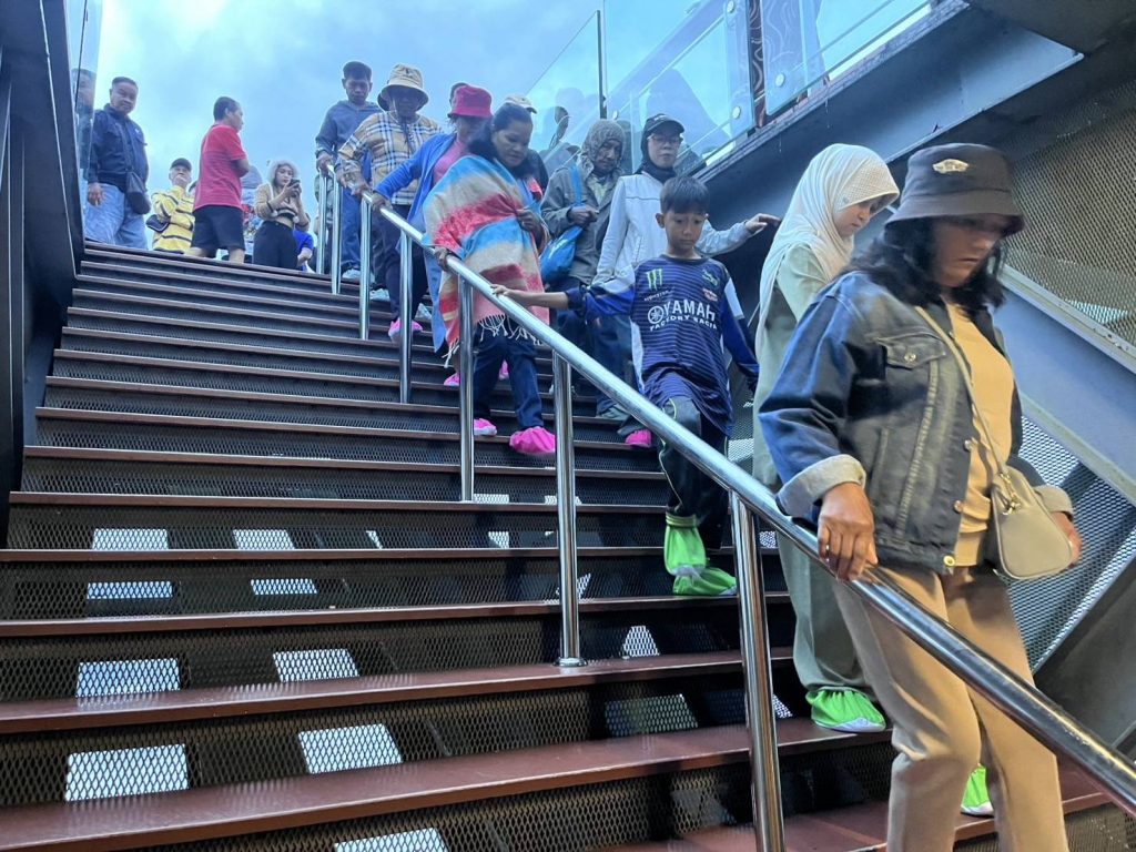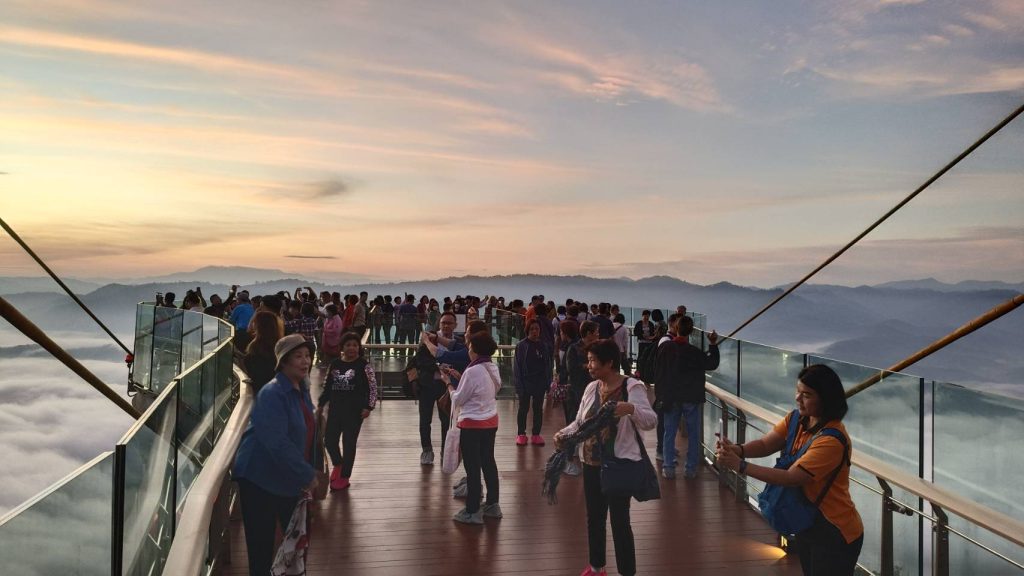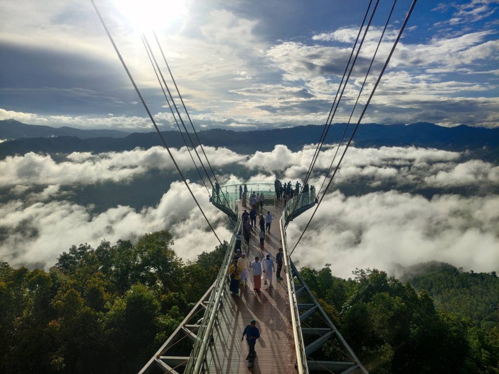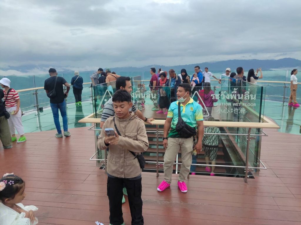 วันนี้ (14 เม.ย.69) บรรยากาศการท่องเที่ยวในวันหยุดวันแห่งครอบครัวช่วงเทศกาลสงกรานต์ ในพื้นที่ อ.เบตง จ.ยะลา เต็มไปด้วยนักท่องเที่ยวที่ต่างพาครอบครัว มาเที่ยวพักผ่อนตามสถานที่ท่องเที่ยวทางธรรมชาติในพื้นที่ โดยเฉพาะที่ทะเลหมอกอัยเยอร์เวง ซึ่งเป็นสถานที่ท่องเที่ยวยอดนิยม ที่สามารถชมหมอก 360 องศา สัมผัสไอหมอก และบ่อน้ำพุร้อนเบตงแช่ออนเซ็นแช่ตัว แช่เท้า ได้โดยไม่ต้องไปไกลถึงญี่ปุ่น โดยในช่วงเช้าบรรดานักท่องเที่ยวทั้งชาวไทย มาเลเซีย ต่างเดินทางมาเที่ยวชมทะเลหมอกและสกายวอล์กอัยเยอร์เวง กันอย่างคึกคักในช่วงวันครอบครัว เพื่อพาครอบครัวมาสัมผัสอากาศเย็นและชมวิวทะเลหมอก ท่ามกลางบรรยากาศป่าฮาลา-บาลา สำหรับสกายวอล์กทะเลหมอกอัยเยอร์เวง หรือ สกายวอล์กอัยเยอร์เวง ตั้งอยู่บนเขาไมโครเวฟ มีความสูงจากระดับน้ำทะเล 2,038 ฟุต ตัวอาคารเป็นโครงสร้างเหล็ก สูง 45 เมตร มีบันไดให้นักท่องเที่ยวเดินขึ้นไปชมวิว และมีลิฟต์ให้บริการสำหรับผู้พิการและผู้สูงอายุ ไฮไลต์ของที่นี่ คือ ระเบียงทางเดินชมวิว หรือสกายวอล์ก ที่ยื่นออกไปจากฐาน ความยาว 63 เมตร ตรงปลายสกายวอล์ก เป็นระเบียงชมวิววงกลมพื้นกระจกใส สามารถมองทะลุลงถึงพื้นด้านล่างที่เป็นหุบเหวและป่าไม้ ถือเป็นภาพที่สวยงามแปลกตาและหวาดเสียวไม่น้อย โดยวันนี้ นายสรธร เพชรแก้วเพชร หัวหน้าป่านันทนาการทะเลหมอกอัยเยอร์เวงได้มาพบปะนักท่องเที่ยวเพื่อแจกตั๋วฟรีในการขึ้นชมทาะเลหมอกบนสกายวอล์ก พร้อมแจกน้ำดื่มฟรีให้กับนักท่องเที่ยวเพื่อคลายร้อน