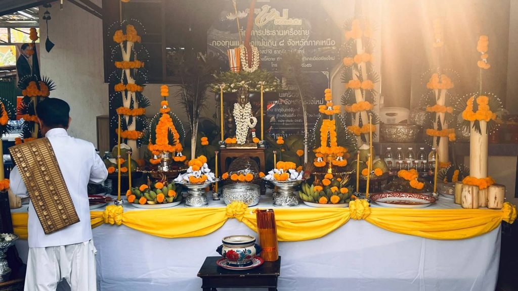 บรรยากาศภายในงานเต็มไปด้วยความศรัทธาและความสามัคคี โดยมีการจัดพิธีทำบุญไหว้ครูเพื่อความเป็นสิริมงคลแก่คณะทำงานและสมาชิกเครือข่ายฯ พร้อมกันนี้ยังได้จัดกิจกรรม “สืบฮีตสานฮอย” ซึ่งเป็นการอนุรักษ์และฟื้นฟูประเพณีวัฒนธรรมล้านนาในช่วงเทศกาลปี๋ใหม่เมืองให้คงอยู่คู่ท้องถิ่น การจัดงานในครั้งนี้ไม่ได้เป็นเพียงการรักษาจารีตประเพณีเท่านั้น แต่ยังเป็นเวทีสำคัญในการรวมพลังเครือข่ายกองทุนแม่ของแผ่นดินทั่วทั้งภาคเหนือตอนบน เพื่อแลกเปลี่ยนเรียนรู้และสร้างความร่วมมือในการขับเคลื่อนงานกองทุนฯ ให้มีความแข็งแกร่ง