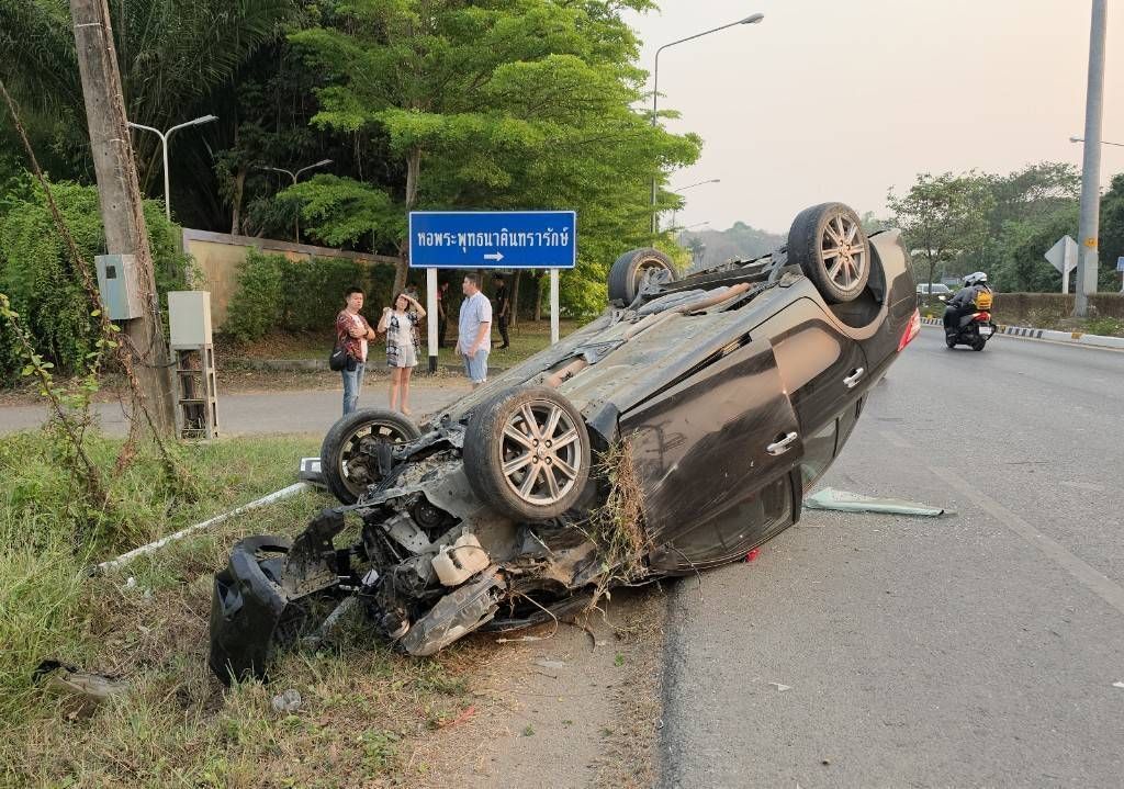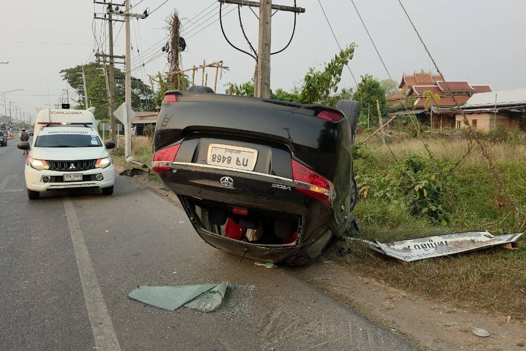 จากการสอบถามเบื้องต้น คนขับให้การว่า ขณะขับรถกลับบ้านเกิดอาการวูบหรือหลับใน ทำให้รถเสียหลักพุ่งชนเกาะกลางและเสาไฟฟ้า รู้สึกตัวอีกครั้งเมื่อรถพลิกคว่ำแล้ว โดยโชคดีที่คาดเข็มขัดนิรภัยจึงไม่ได้รับบาดเจ็บรุนแรง