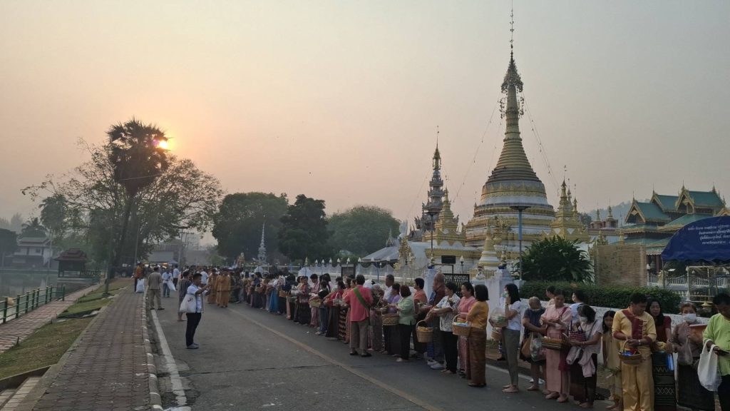 แม่ฮ่องสอน – ชาวแม่ฮ่องสอนร่วมตักบาตรรับวันปีใหม่ไทยเพื่อความเป็นศิริมงคล