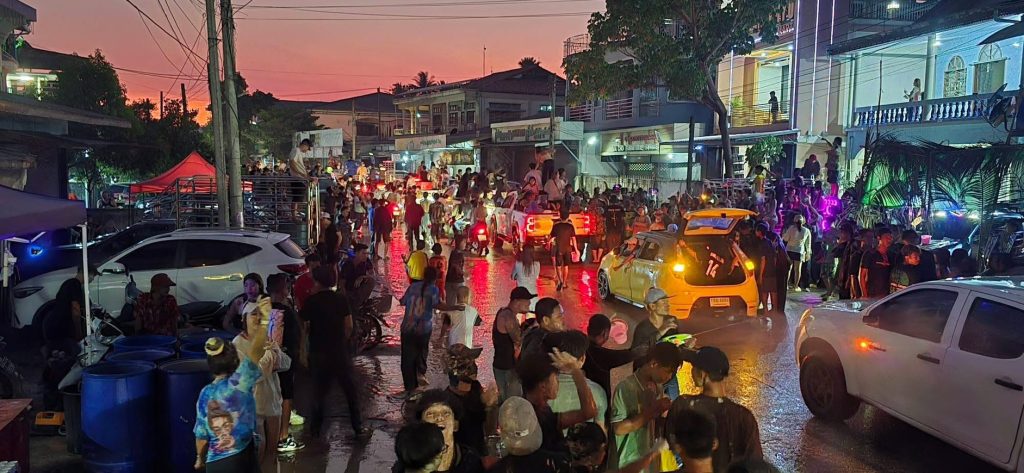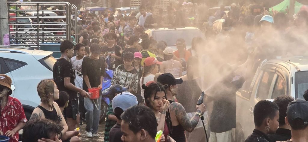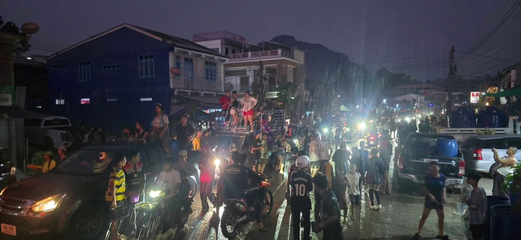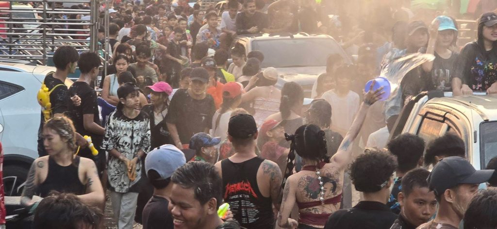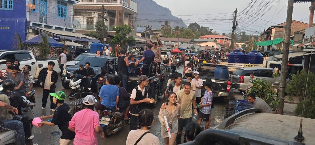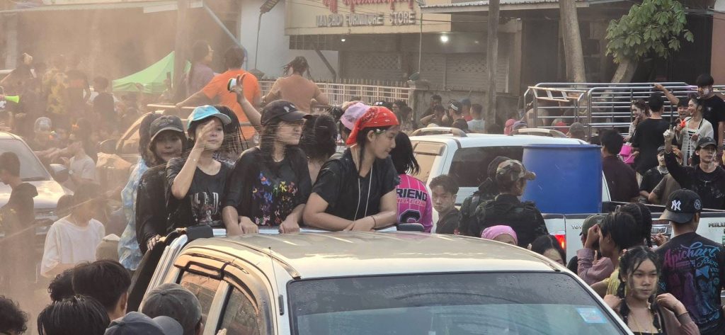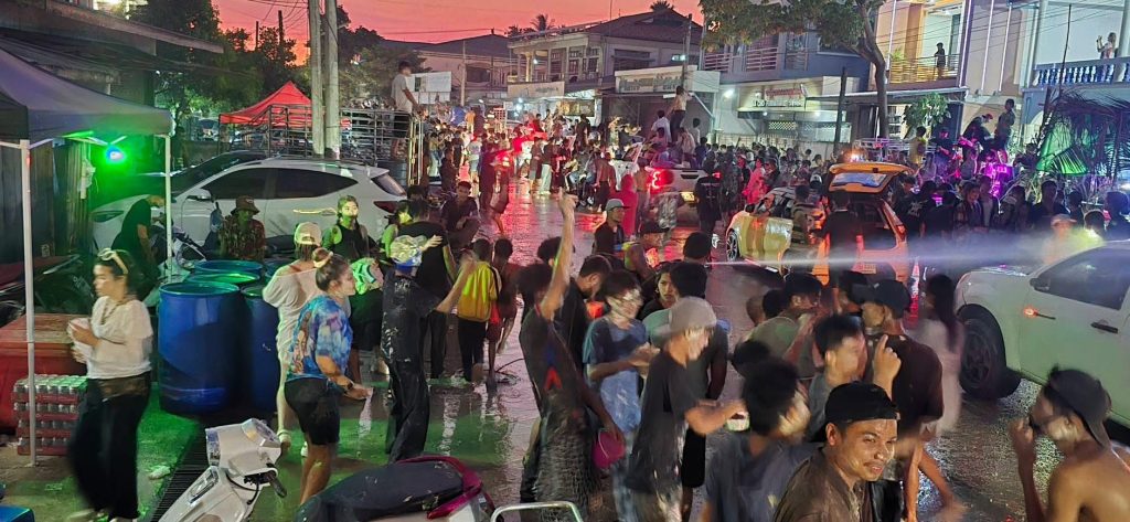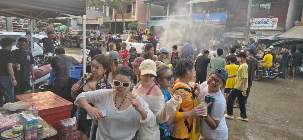 กาญจนบุรี บรรยากาศสงกรานต์ในเมืองพยาตองซู ประเทศเมียนมาสุดคึกคักวัยรุ่นทั้งไทยและเมียนมาออกมาเล่นสาดน้ำ ปะแป้ง เฉลิมฉลองเทศกาลสงกรานต์อย่างคึกคัก ด้วยการปิดเมือง นำรถยนต์ออกมาเปิดเตรื่องเสียง เต้น ปาร์ตีโฟม ส่งผลให้ถนนหลักของเมืองพยาตองซู จากหน้าด่าน ตม-หน้าสำนักงานชุดประสานงานของDKBA ระยะทางกว่า3 กม เต็มไปด้วยรถยนต์ และผู้คนที่ออกมาเต้น เล่นน้ำสงกรานต์ โดยเจ้าหน้าที่ได้ปล่อยให้ประชาชน และนักท่องเที่ยว ได้สนุกสนานกันอย่างเต็มที่ โดยมีการรักษาความปลอดภัยอยู่ห่างๆซึ่งการเล่นน้ำจะมีขึ้นตั่งแต่เวลา 15.30 น จนถึงเวลา 21.00 น ตั้งแต่วันที่ 14 เมษายน จนถึง 17 เมษายน นี้