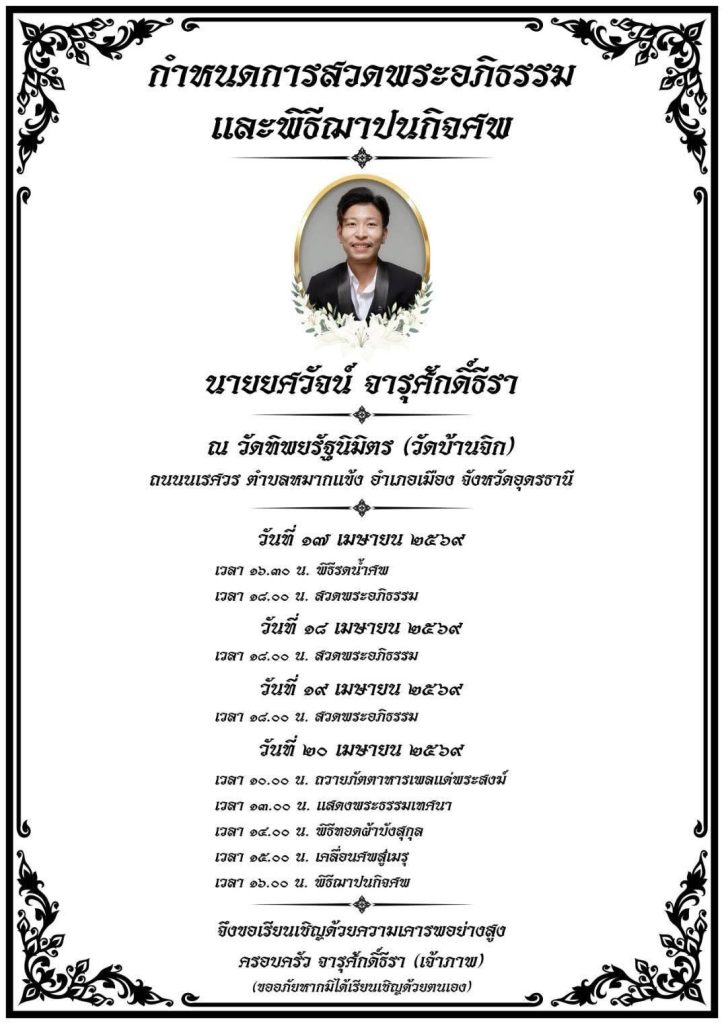 ในส่วนศพนายยศวัจน์ ฯ ทางญาติได้เคลื่อนร่างกลับไปบ้านเกิดที่จังหวัดอุดรธานี เพื่อทำพิธีบำเพ็ญกุศลที่วัดทิพยรัฐนิมิตร (วัดบ้านจิก) ตำบลหมากแข้ง อำเภอเมือง จังหวัดอุดรธานี โดยจะมีพิธีรดน้ำศพวันนี้ (17 เมษายน 69) เวลา 16.30 น และสวดอภิธรรม เวลา 17.00 น.#ข่าว เหตุรุมทำร้าย#กลางเมืองหนองคาย#สงกรานต์#พ่อตู้ลภ-มนเดช