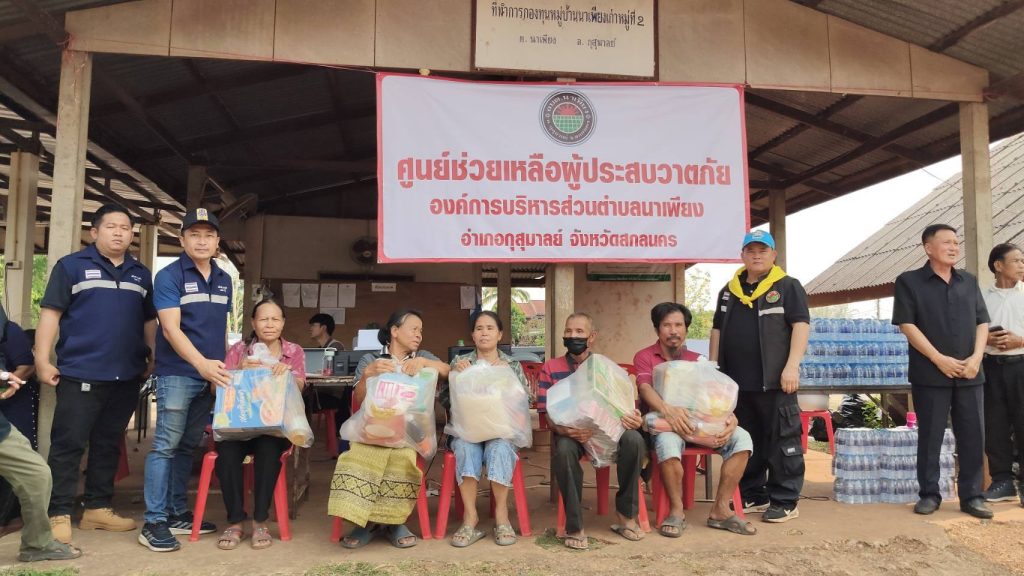 สกลนคร อบต.นาเพียงมอบถุงยังชรพผู้ประสบวาตภัย 250