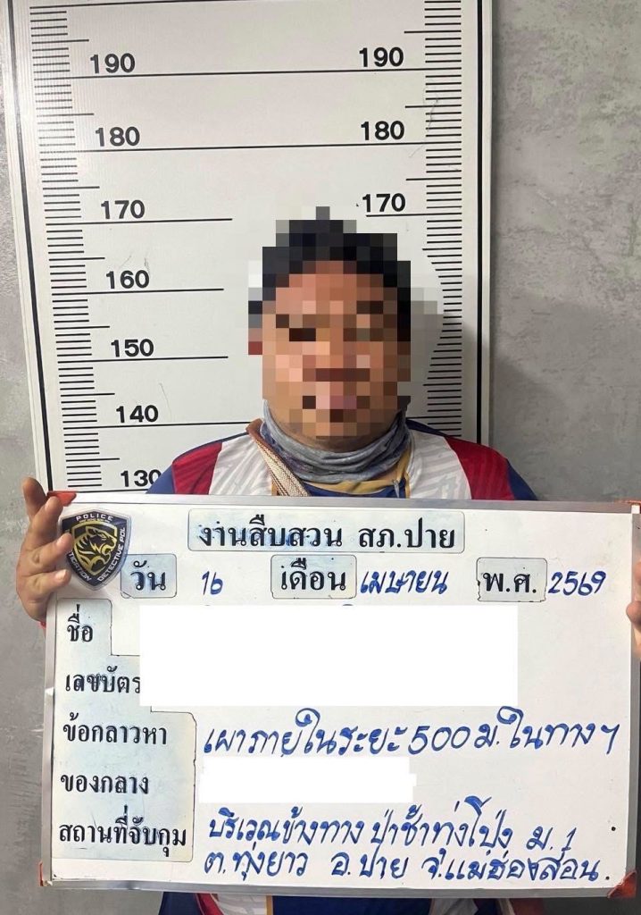 วันนี้ (18 เม.ย. 2569) พ.ต.ท.ปพัสศ์พงศ์ แก้วรากมุก สว.สภ.ท่าตาฝั่ง อ.แม่สะเรียง จ.แม่ฮ่องสอน เผยว่า สถานีตำรวจภูธรท่าตาฝั่งได้จับกุมผู้กระทำความผิด 1 ราย ในข้อหา “เผาหรือกระทำการใด ๆ ในระยะ 500 เมตร จากทางเดินรถ อันอาจก่อให้เกิดอันตรายต่อการจราจร” ตามพระราชบัญญัติจราจรทางบก บริเวณถนนสายคลองชลประทาน บ้านห้วยสิงห์ หมู่ที่ 4 ต.แม่ยวม อ.แม่สะเรียง จ.แม่ฮ่องสอน