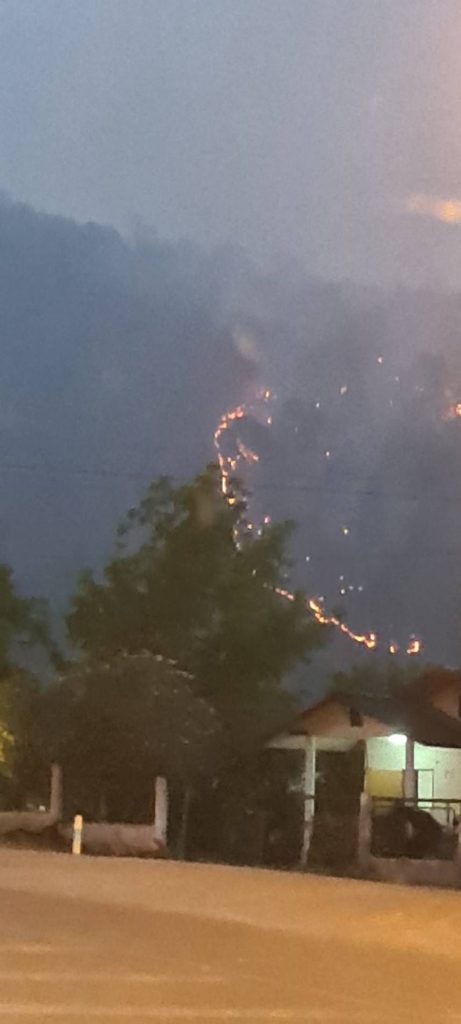 เข้าควบคุมไฟป่า และทำแนวกันไฟ บริเวณหลังโรงพยาบาลเฉลิมพระเกียรติ ตลอดจนประเมินสถานการณ์ในการเคลื่อนย้ายผู้ป่วยฉุกเฉิน และผู้ป่วยกลุ่มเปราะบาง