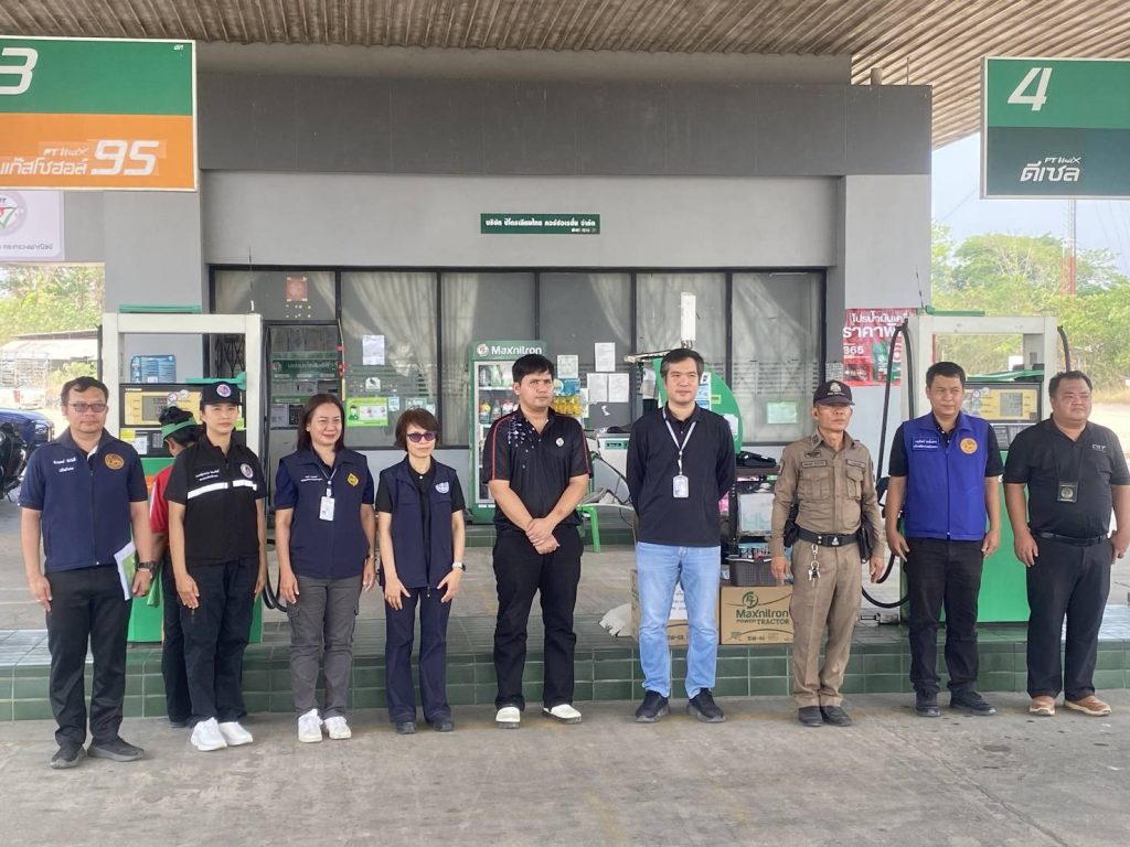 โดยได้ตรวจสถานีบริการน้ำมันเชื้อเพลิงและก๊าซ LPG ภาคขนส่ง จำนวน 4 แห่ง ได้แก่ บริษัท ชัสโก้ จำกัด (มหาชน) (บางจากแดนชุมพล) หจก. เอ.ปิโตรเลียม (สาขาสอง) (ปตท. สอง) บริษัท ปิโตรเลียมไทยคอร์ปอเรชั่น จำกัด (PT ด่านนางฟ้า) และบริษัท โอลิมปัส ออยล์ จำกัด (สาขาสอง ) (PT ทุ่งน้าว) จากการตรวจสอบพบว่า ราคาน้ำมันเชื้อเพลิงมีการจำหน่าย ดังนี้ น้ำมันดีเซล B7 ราคา 42.37 บาทต่อลิตร แก๊สโซฮอล์ 95 ราคา 43.12 บาทต่อลิตร แก๊สโซฮอล์ 91 ราคา 42.75 บาทต่อลิตร และแก๊สโซฮอล์ E20 ราคา 36.12 บาทต่อลิตร ส่วนก๊าซ LPG (ภาคขนส่ง) ราคา 18.69 บาทต่อลิตร ทั้งนี้ ไม่พบการกักตุนหรือฉวยโอกาสปรับขึ้นราคา สถานีบริการมีปริมาณน้ำมันและก๊าซ LPG เพียงพอต่อความต้องการของประชาชนในพื้นที่ ยกเว้นน้ำมันดีเซลที่มีปริมาณไม่เพียงพอในช่วงบ่ายของวันดังกล่าว เนื่องจากรถขนส่งเข้ามาเติมไม่ทัน อย่างไรก็ตาม มีการขนส่งเติมน้ำมันเข้าสถานีอย่างต่อเนื่องเป็นประจำทุกวัน