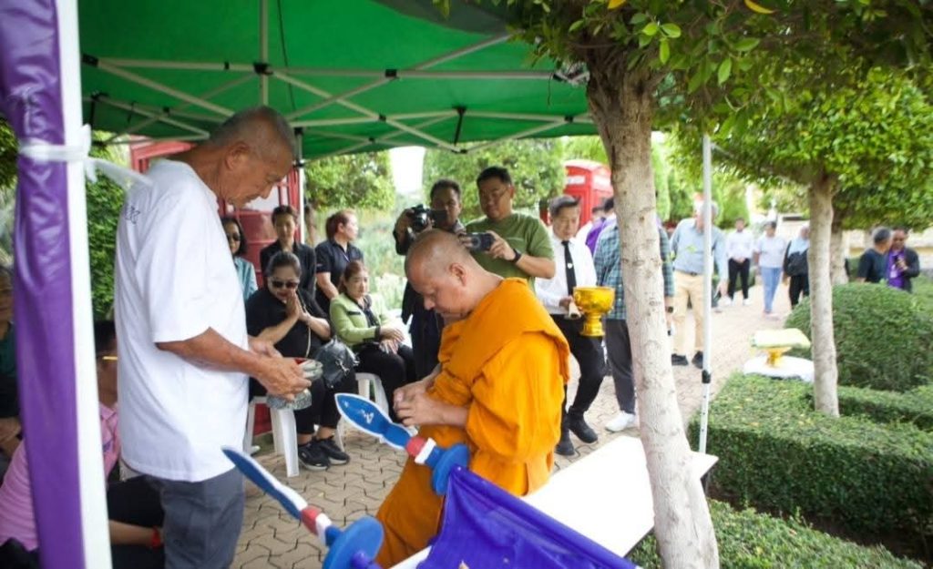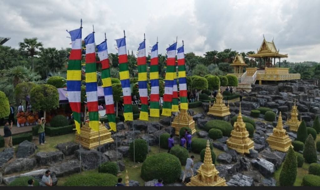 โดยนายกัมพล ตันสัจจา ประธานสวนนงนุชพัทยา เป็นประธานในพิธี พร้อมคณะผู้บริหารร่วมงานอย่างพร้อมเพรียง และได้นิมนต์ พระครูเกษมกิจโสภณ พร้อมพระสงฆ์รวม 9 รูป ประกอบพิธีเจิมแป้ง ปิดทอง และประพรมน้ำพระพุทธมนต์แก่ธงมนตราทั้ง 9 ผืน ท่ามกลางความสนใจของนักท่องเที่ยวทั้งชาวไทยและต่างชาติ