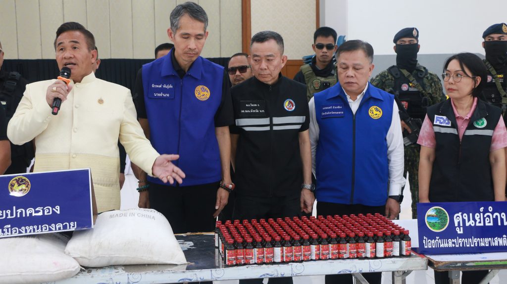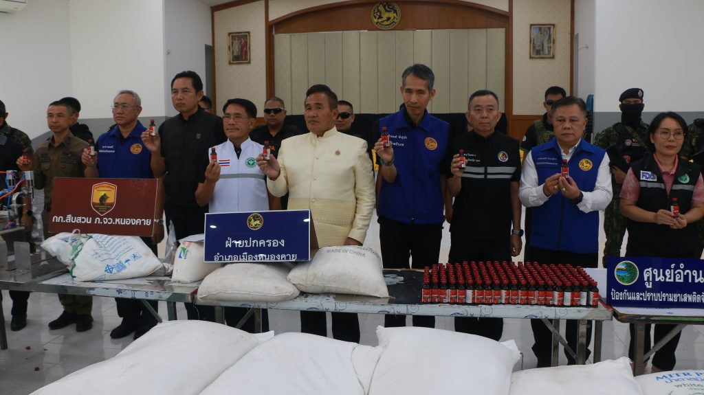 ผู้ว่าฯหนองคาย แถลงข่าวหลังฝ่ายปกครองอำเภอเมืองหนองคาย ร่วมกับ กก.สส.ภ.จว.หนองคาย สสจ.หนองคาย บุกทลายเครือข่ายโรงงานผลิตยาแก้ไอปลอม
