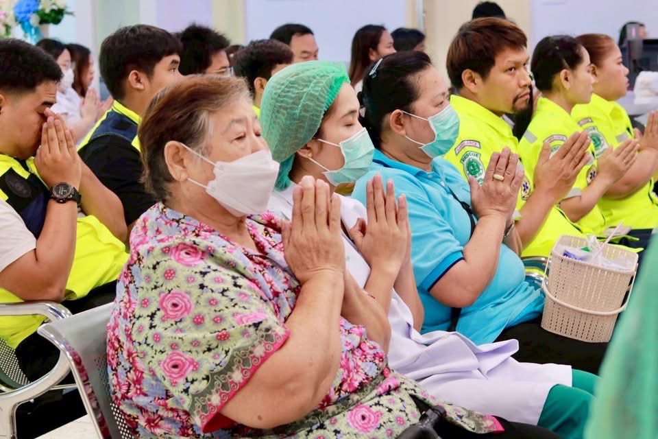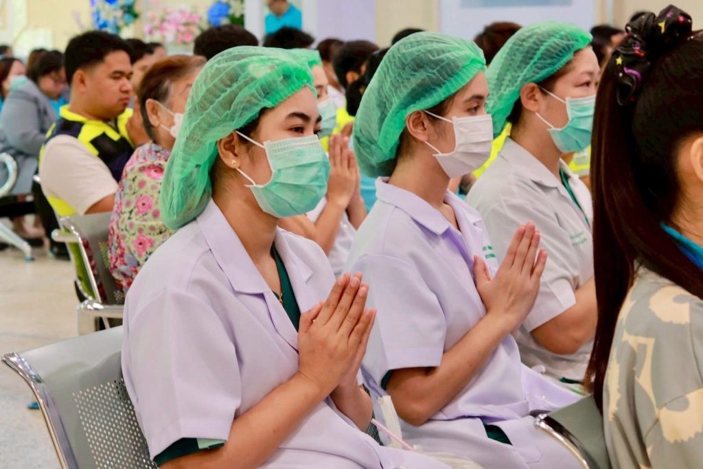พิธีเจริญพุทธมนต์ พร้อม ถวายภัตตาหารแด่พระสงฆ์ 9 รูปเนื่องในพิธีครบรอบ 38 ปี โรงพยาบาลกำแพงแสน